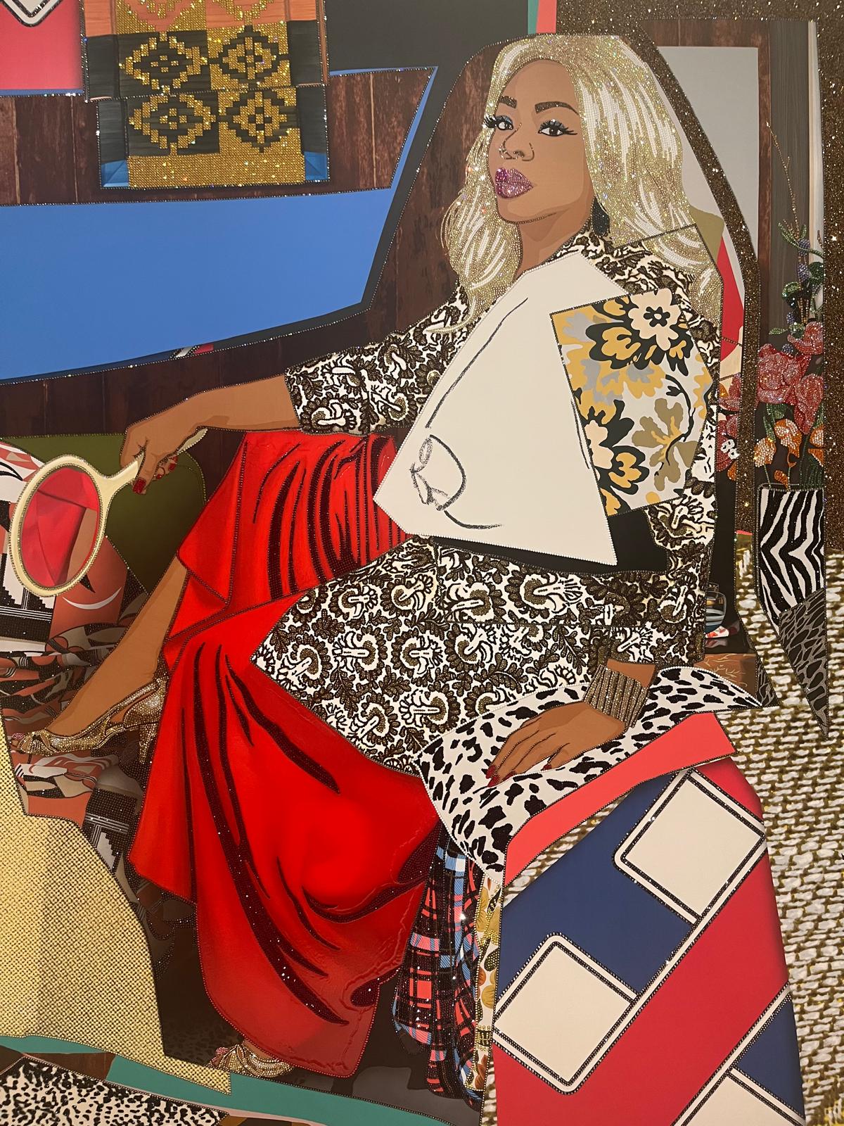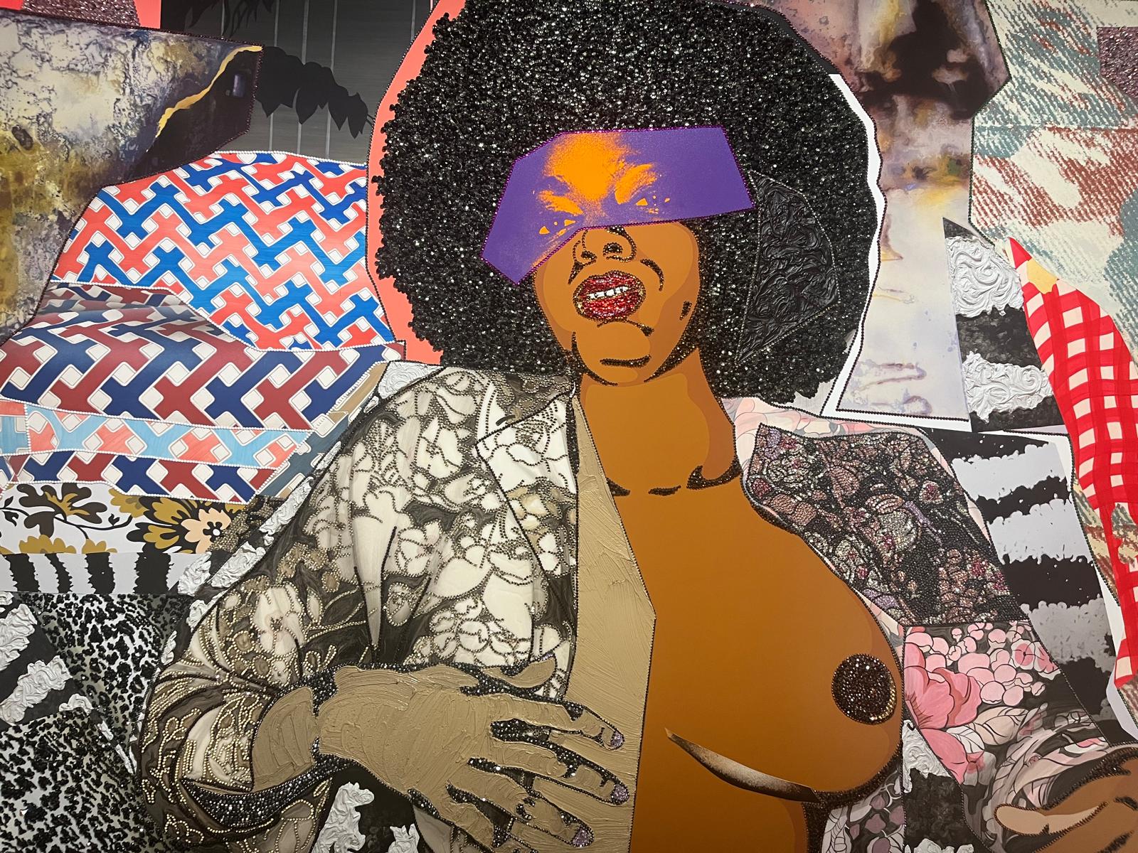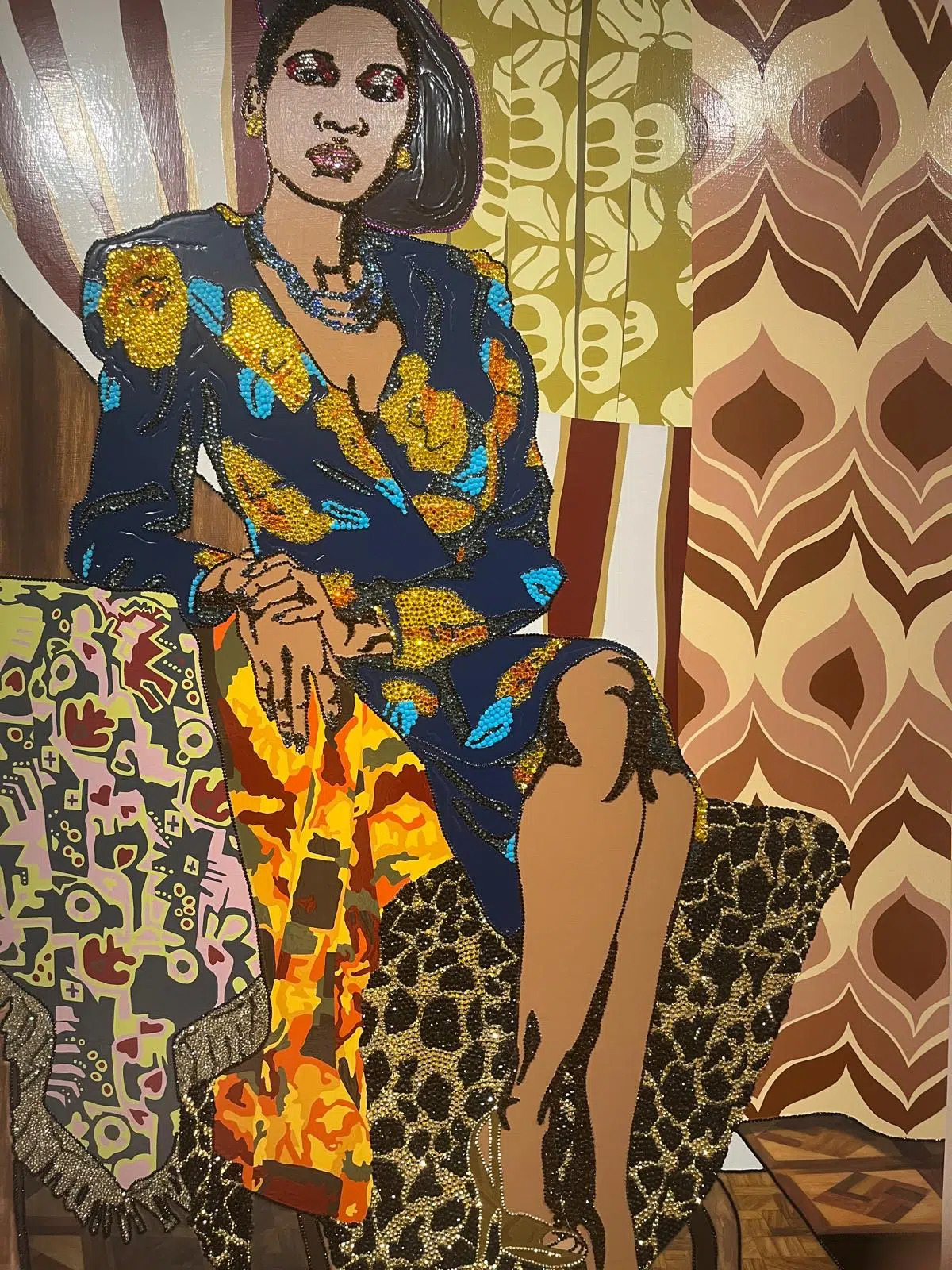 Strass, motifs seventies, aplats de couleurs puissants, références directes à l’histoire de l’art… mais surtout, des femmes noires, présentes, frontales, souveraines.