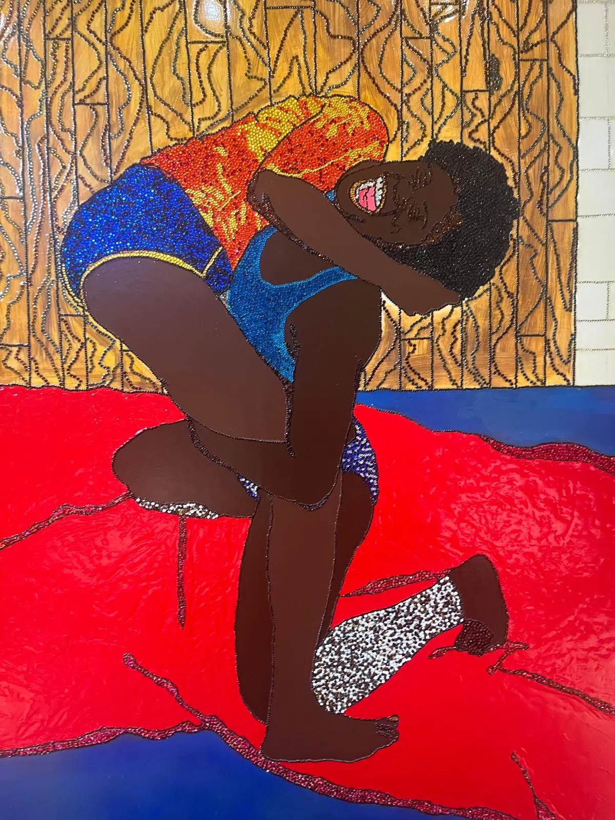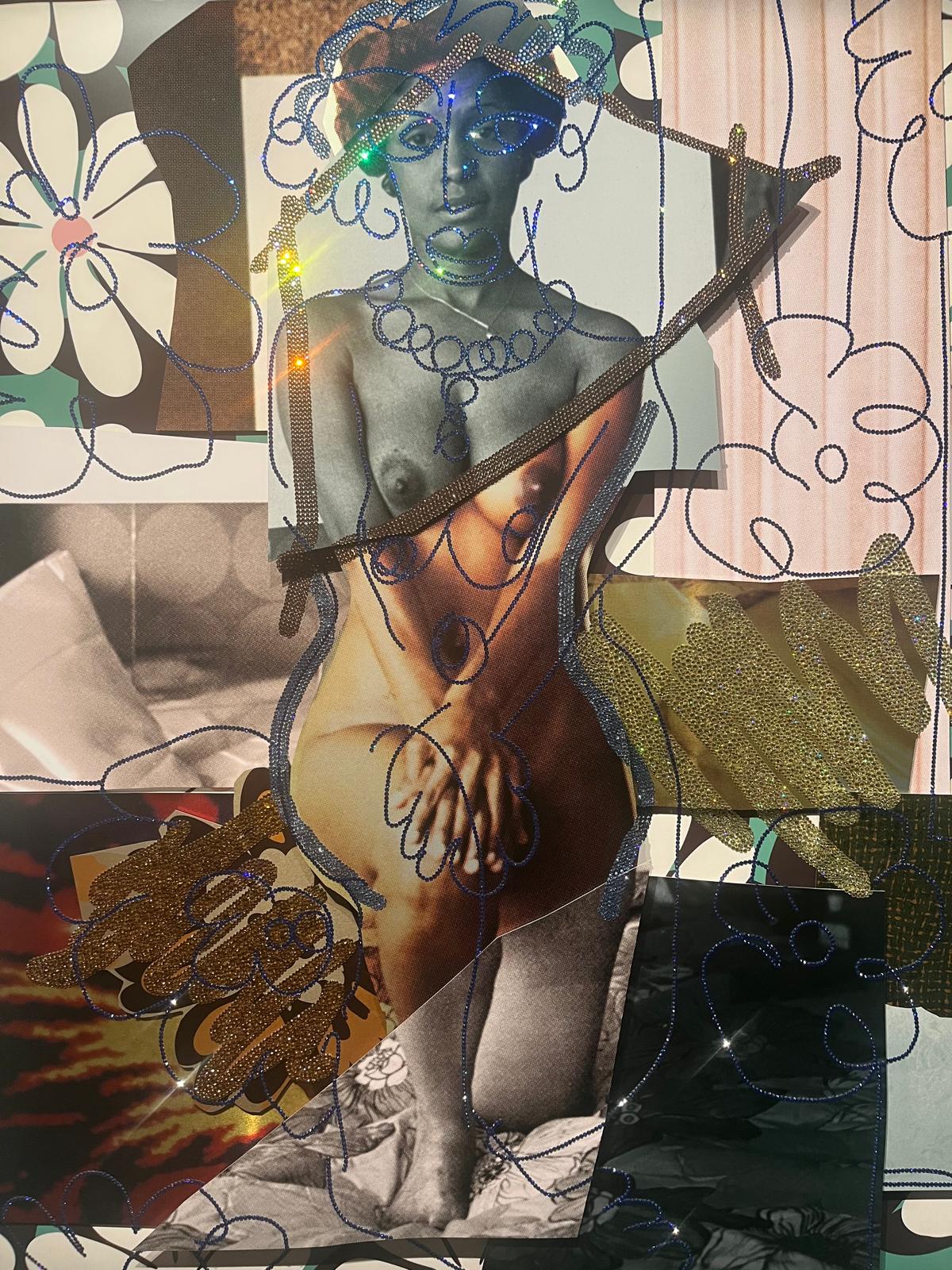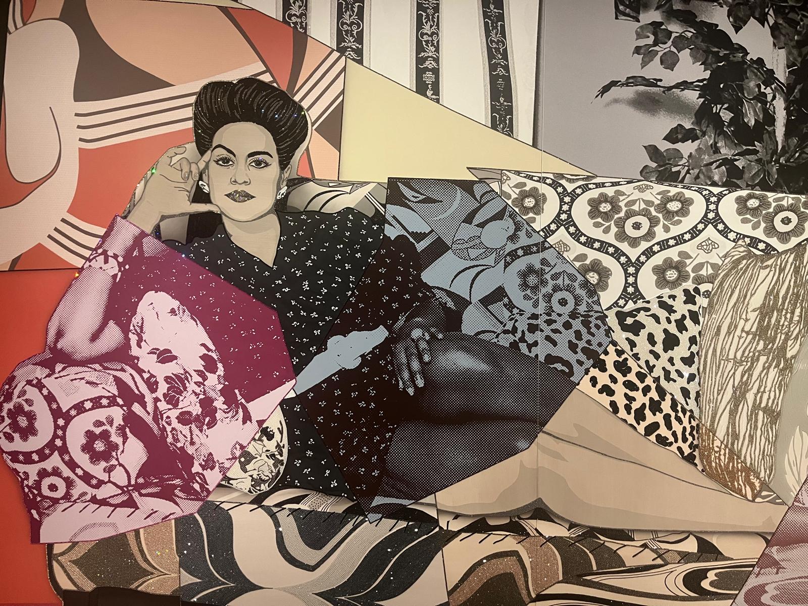 Strass, motifs seventies, aplats de couleurs puissants, références directes à l’histoire de l’art… mais surtout, des femmes noires, présentes, frontales, souveraines.