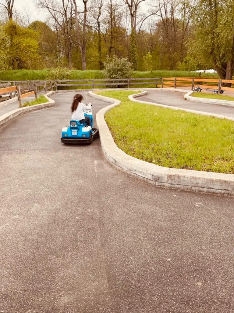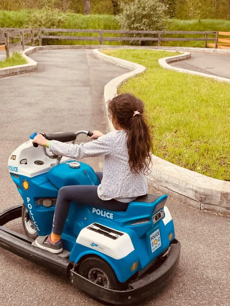 Les enfants pourront également faire 2 tours de petite moto électrique, dans un circuit aménagé. Ces petites courses improvisées sont très amusantes pour les petits. Juste derrière, une ferme se profile avec des moutons, chèvres ainsi qu’un poulailler. Il est d’ailleurs possible de rentrer dans l’enclos et les approcher de près, ce que nous avons fait.