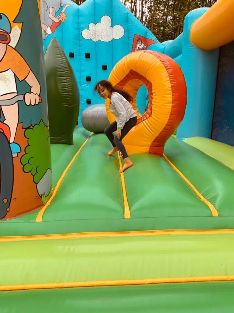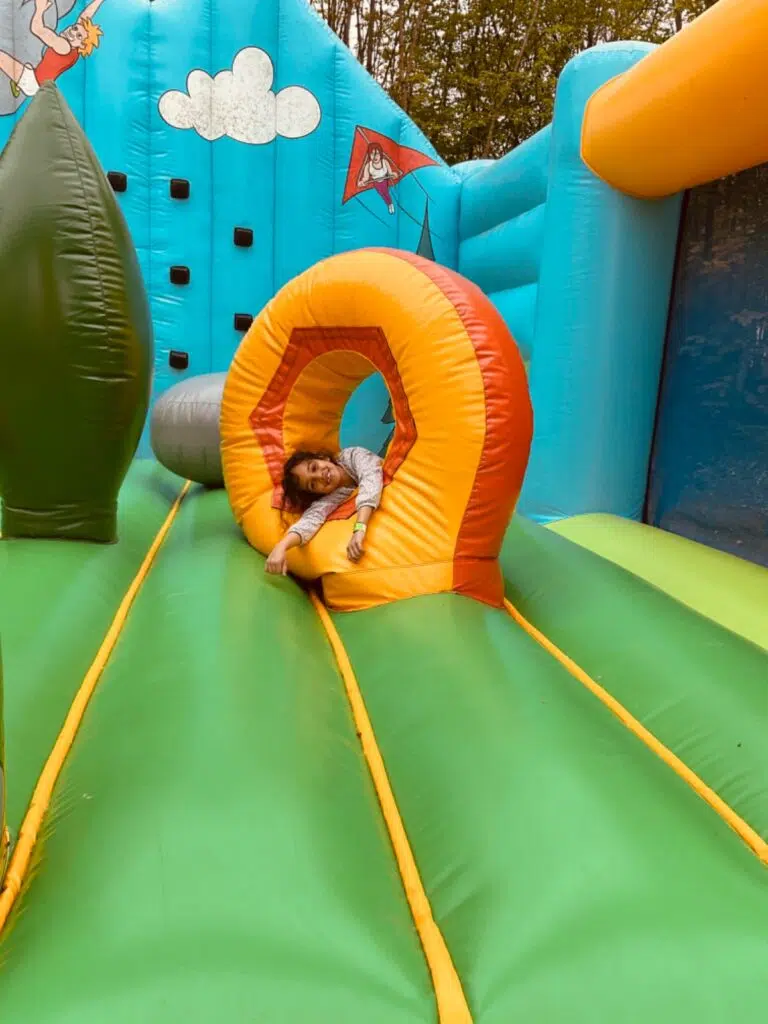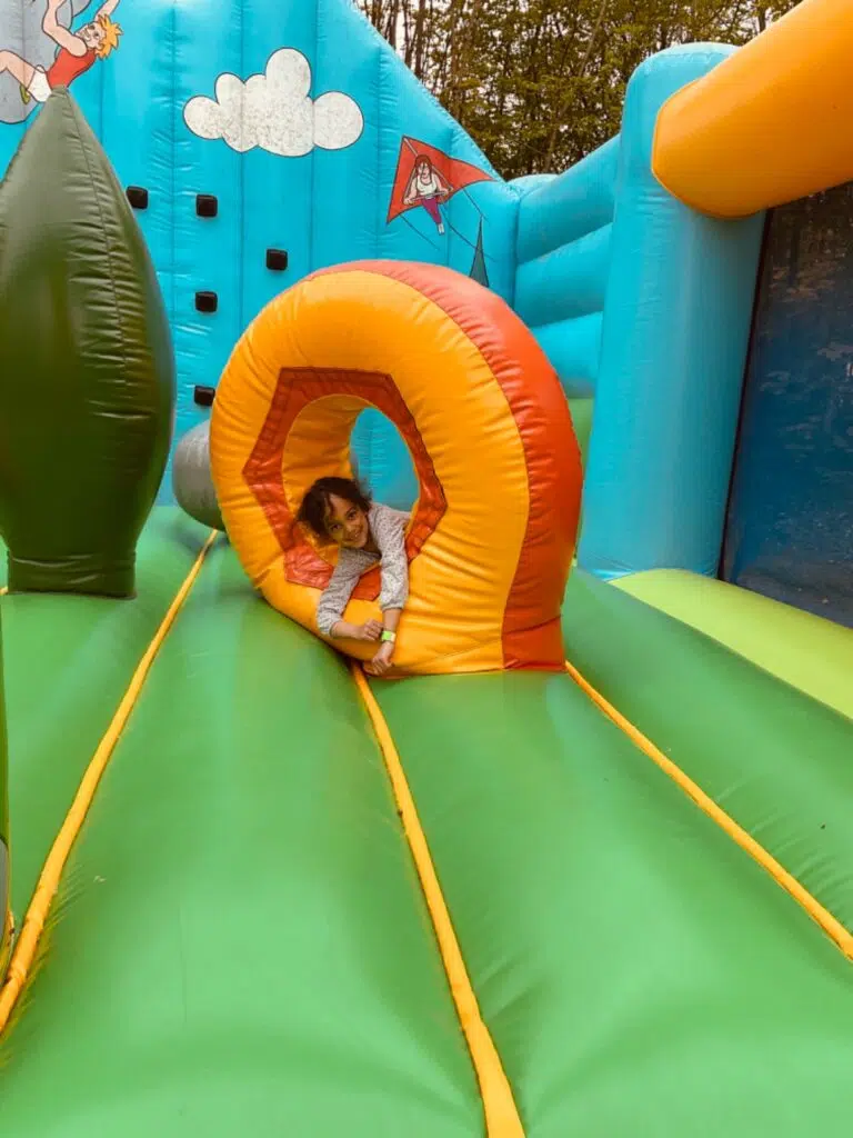Eva, ma sublime, sautille d’excitation à la vue des structures gonflables géantes. Le temps nous manquerait presque pour toutes les tester. On ne perd pas une minute. On retire nos chaussures et on se jette dedans avec joie. Une sensation de liberté nous envahit.