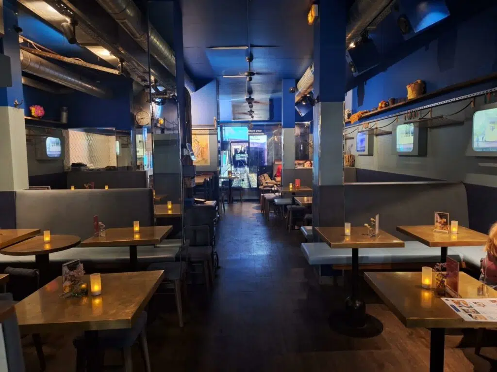 On se croirait dans le Rajdhani Express, célèbre train indien car toute l’architecture du bar est dessinée en longueur.