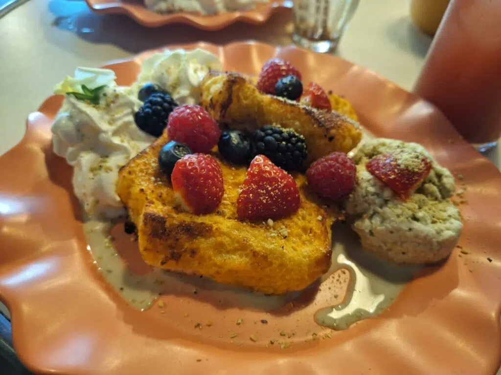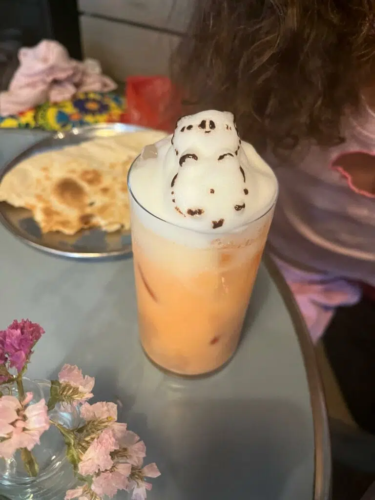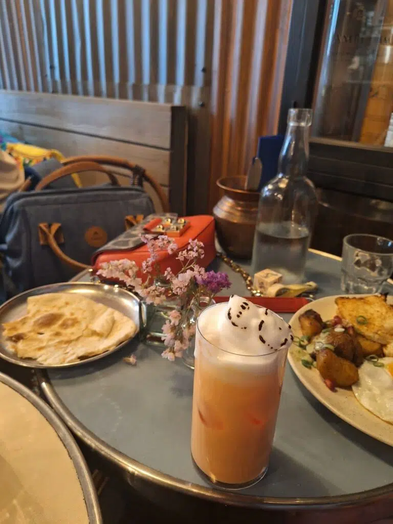 Le brunch se déroule en plusieurs temps. Nous vous conseillons de démarrer par la boisson conçue par Pingwoo. Vous aurez le choix entre un lassi fleur de rose, mangue et un café, latte, matcha, chai latte, avec en récompense, un magnifique dessin en 3D à la mousse de lait qui apportera une touche d’originalité à votre repas. Instagramable à souhait !