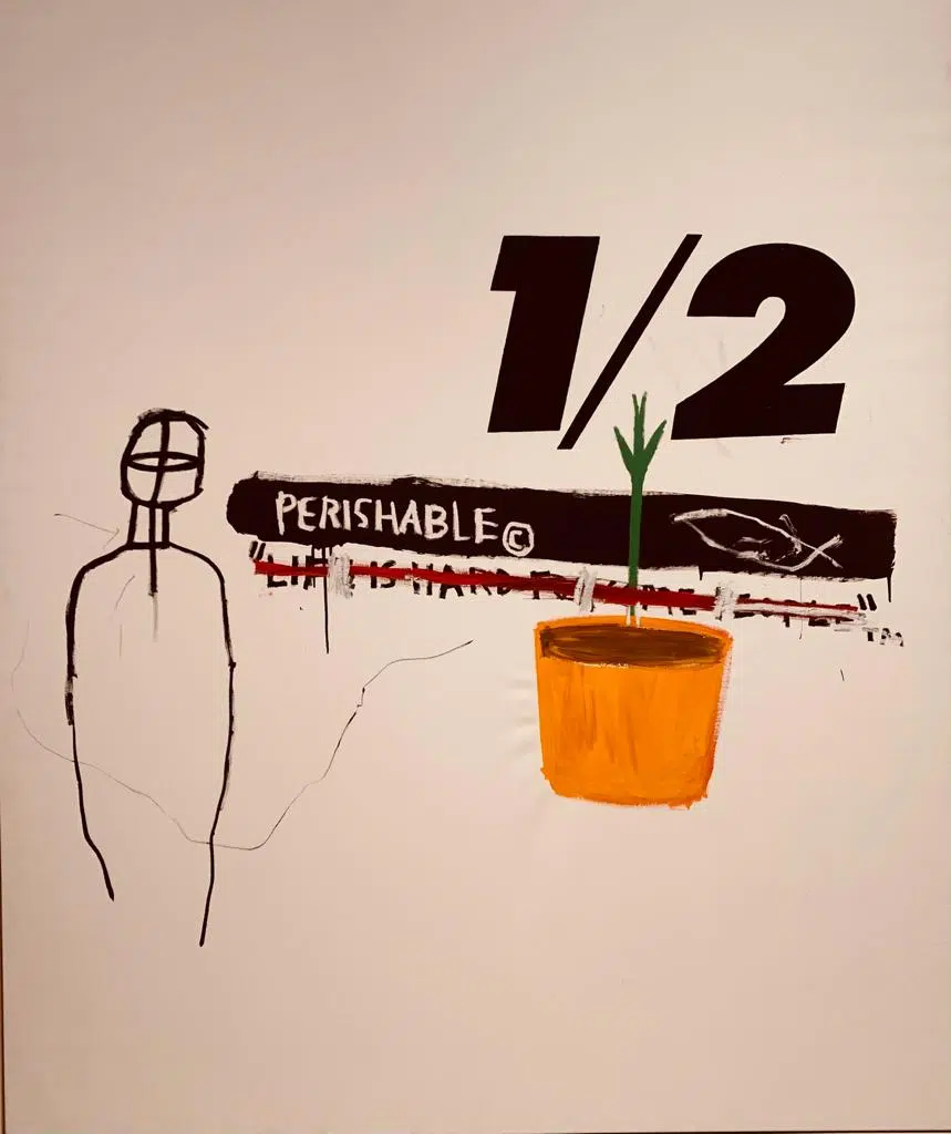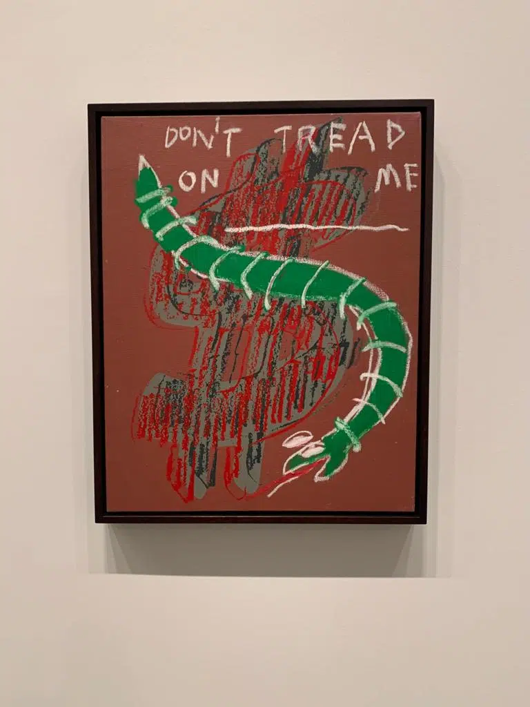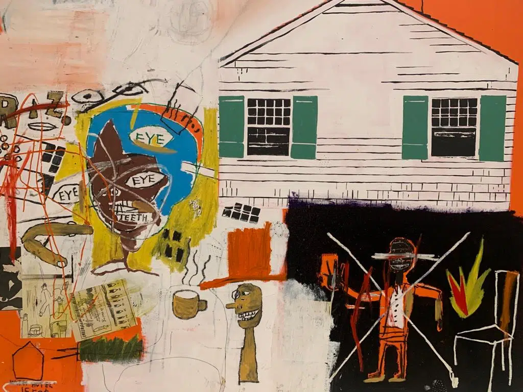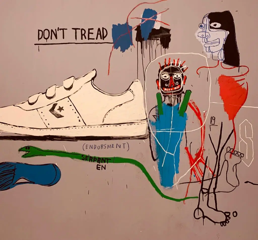 Les tableaux de Basquiat, malgré ces couleurs vives, décrivent une certaine forme de tristesse et dénoncent le racisme, encore bien présent dans les années 80. Certaines phrases, don’t tread on me, évoquent l’insoumission et l’exhortation au respect. Il dira lui même: « Je ne suis pas un artiste noir, je suis un artiste. » Ces toiles ne cherchent pas à être belles mais à provoquer l’indignation, la révolte, dans la même lignée que ses graffitis qu’il mettait en avant dans les rues de New York, quelques années auparavant.