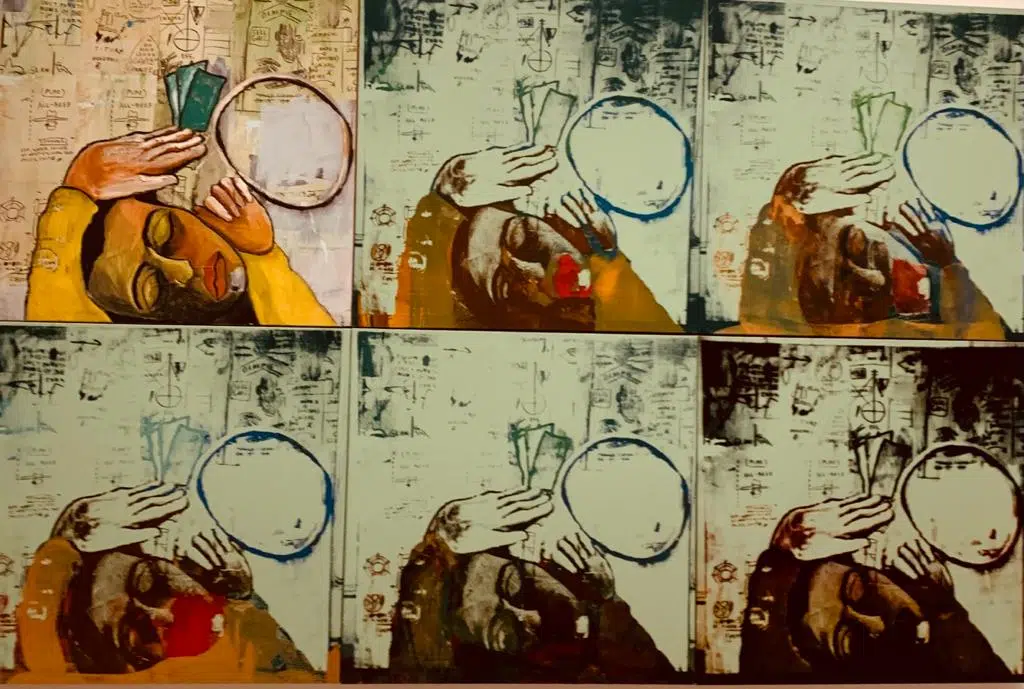 Vous ne resterez pas de marbre face à ces toiles, grandeur nature. On y retrouve différentes techniques de peinture: acrylique, collage, photo.