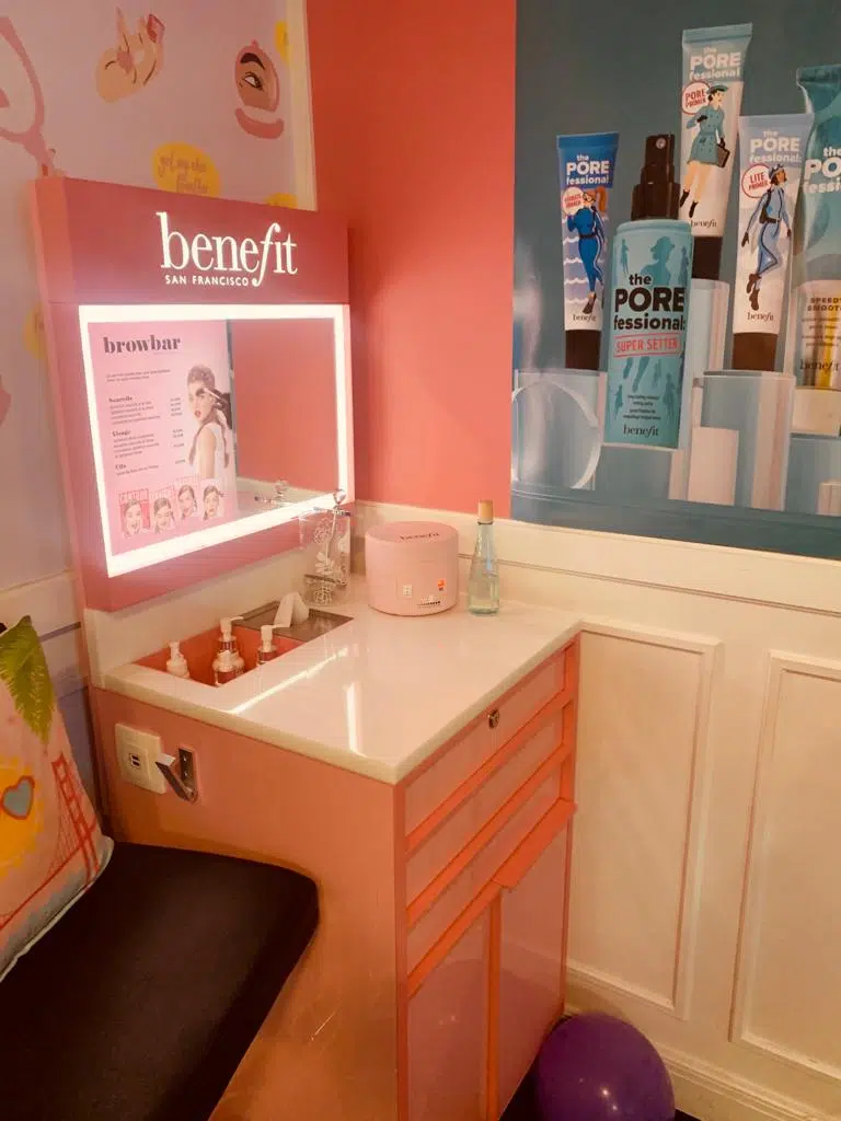 Benefit, des locaux conviviaux et rose bonbon. On adore !