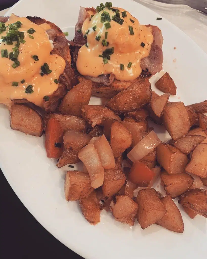 - des oeufs à la norvégienne avec des pommes de terre sautées en accompagnement