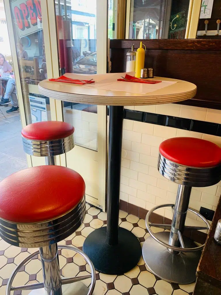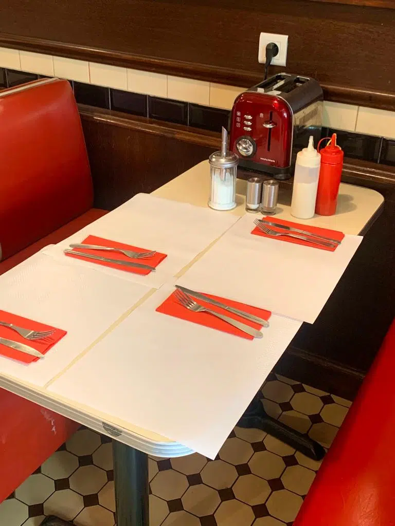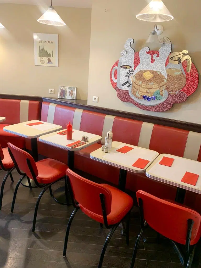 Le restaurant du Marais est un lieu cosy, agréable et très bien placé. Les salles sont très bien entretenues et décorées avec goût. Sur chaque table, on retrouve les assaisonnements classiques: moutarde, ketchup et sucre, en libre service. Tout de rouge vêtu, Breakfast in America s’impose par son originalité.