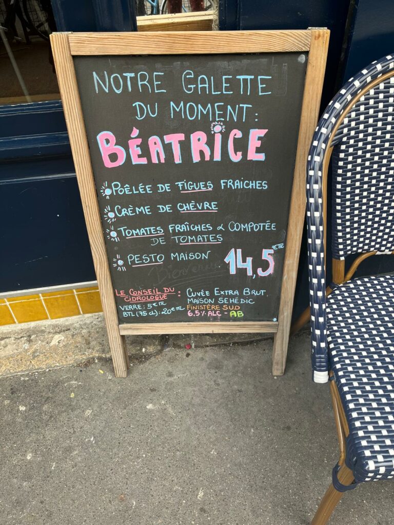 Chaque galette porte un prénom féminin ancien, comme un clin d’œil tendre au passé : Yvonne, Odette, Paulette… Une façon de donner une âme à chaque assiette. Les classiques sont là, parfaitement exécutés : œuf, jambon, fromage, fondue d’oignons. Mais Brutus ose aussi les associations inattendues, comme une galette au poulet façon tajine, aubergines grillées, amandes effilées et zestes de citron confit. L’équilibre est juste, les saveurs bien calibrées, sans lourdeur.