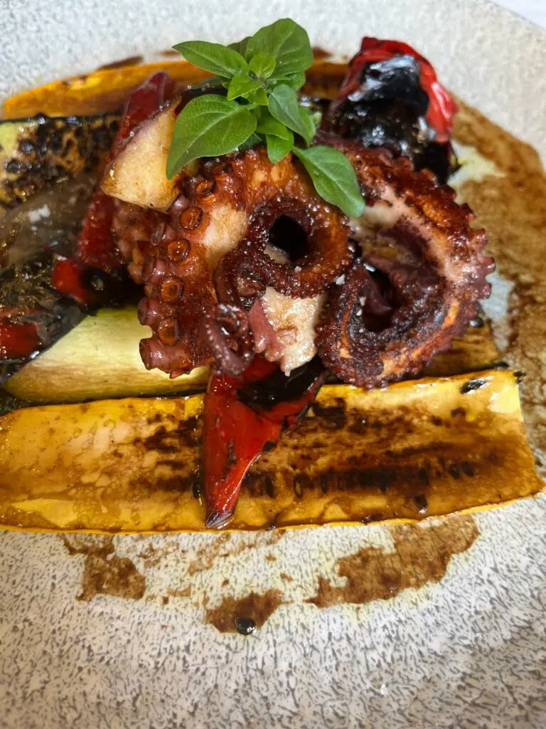 Si tu préfères la mer, le poulpe snacké est tendre et savoureux. Pour les grandes tablées, la côte de veau milanaise ou l’entrecôte Angus à partager sont des choix qui mettent tout le monde d’accord.