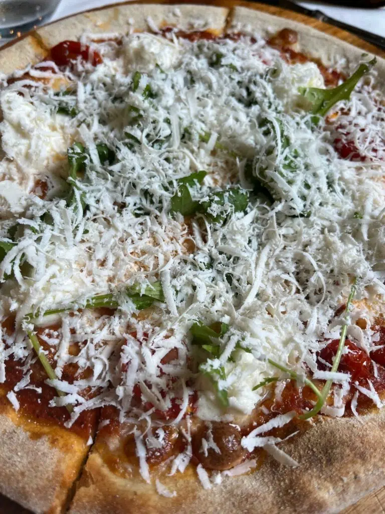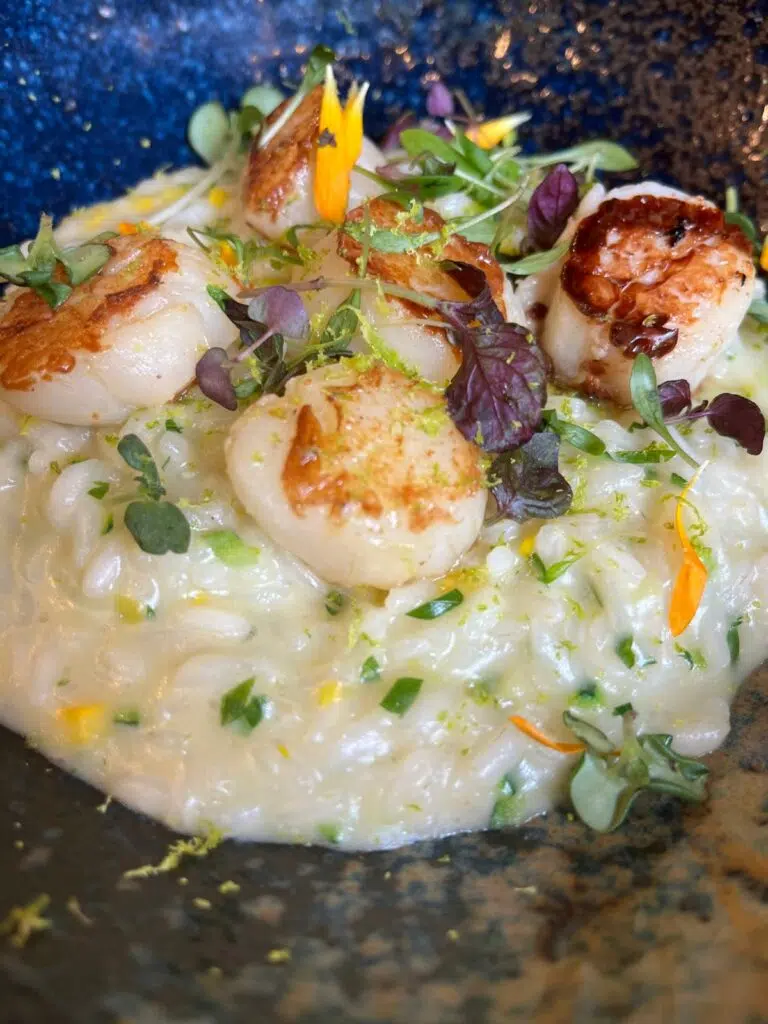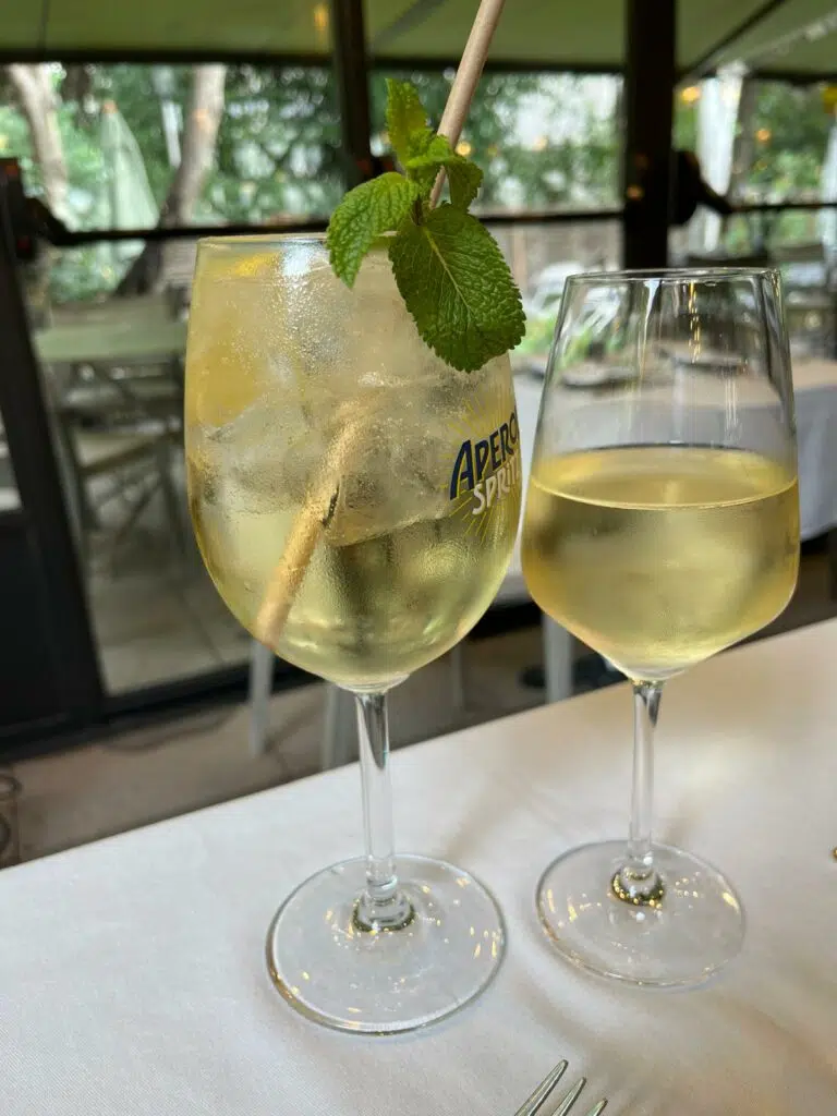 On commence souvent par les mezzés : houmous au pesto et pistache, houmous betterave, falafels maison, panisses croustillantes… De quoi ouvrir l’appétit autour d’un verre. Et côté verres justement, difficile de résister à un Spritz bien frais, un Bellini ou un cocktail maison comme le Diablo Rojo au mezcal et ginger beer.