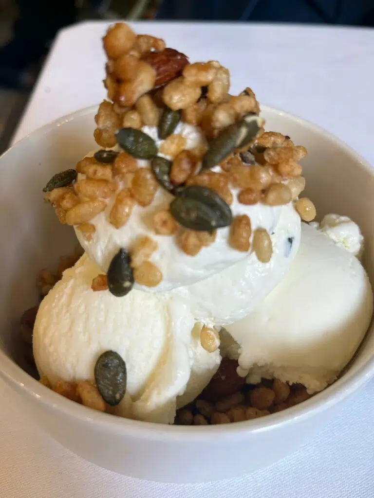 Sous cette charpente impressionnante, l’atmosphère est pourtant chaleureuse. Grandes tables, banquettes confortables et éclairages doux composent un cadre qui mélange esprit convivial et élégance méditerranéenne. On sent que le lieu est pensé pour les grandes tablées, les dîners en famille ou entre amis, mais aussi pour un rendez-vous un peu plus intime.