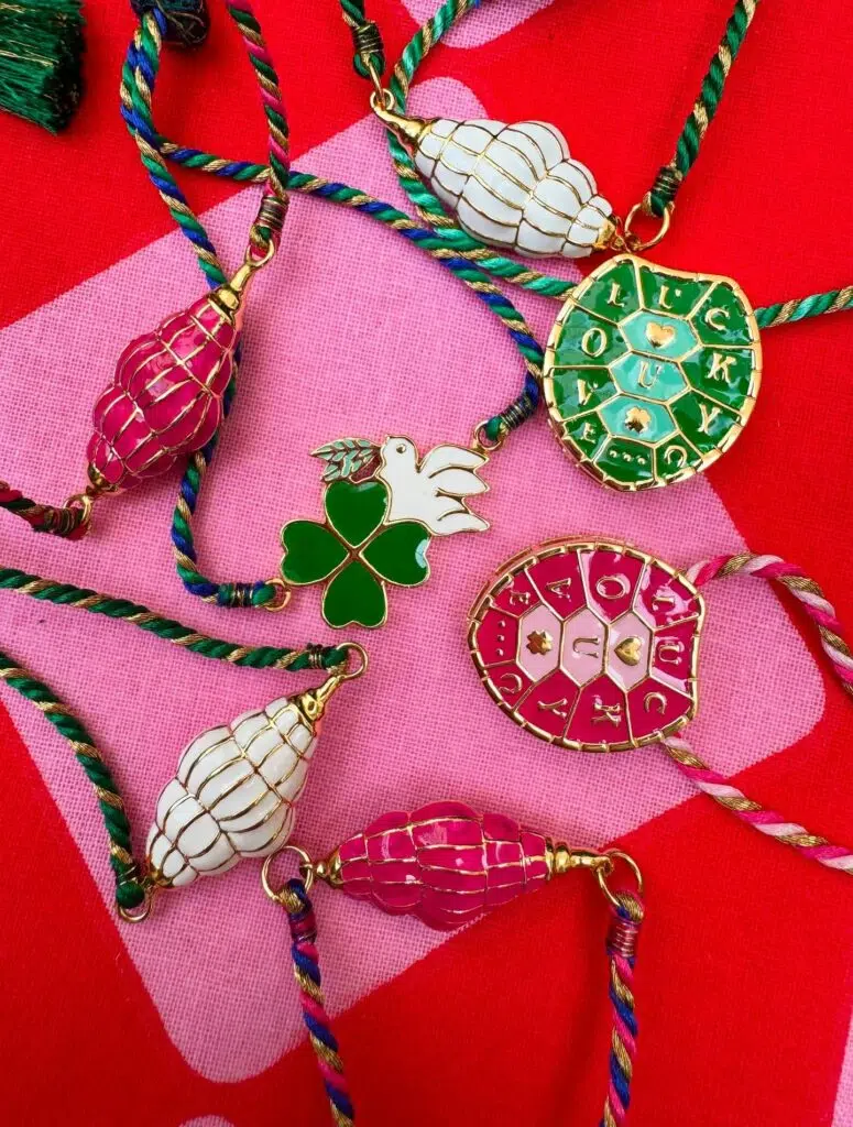 Née sur les hauteurs de Saint-Tropez dans les années 70, la maison marseillaise incarne l’art du bijou artisanal. Créoles dorées, manchettes colorées, colliers talismans : chaque pièce est façonnée à la main dans leur atelier, avec un savoir-faire labellisé “Entreprise du Patrimoine Vivant”. Un style solaire et intemporel.