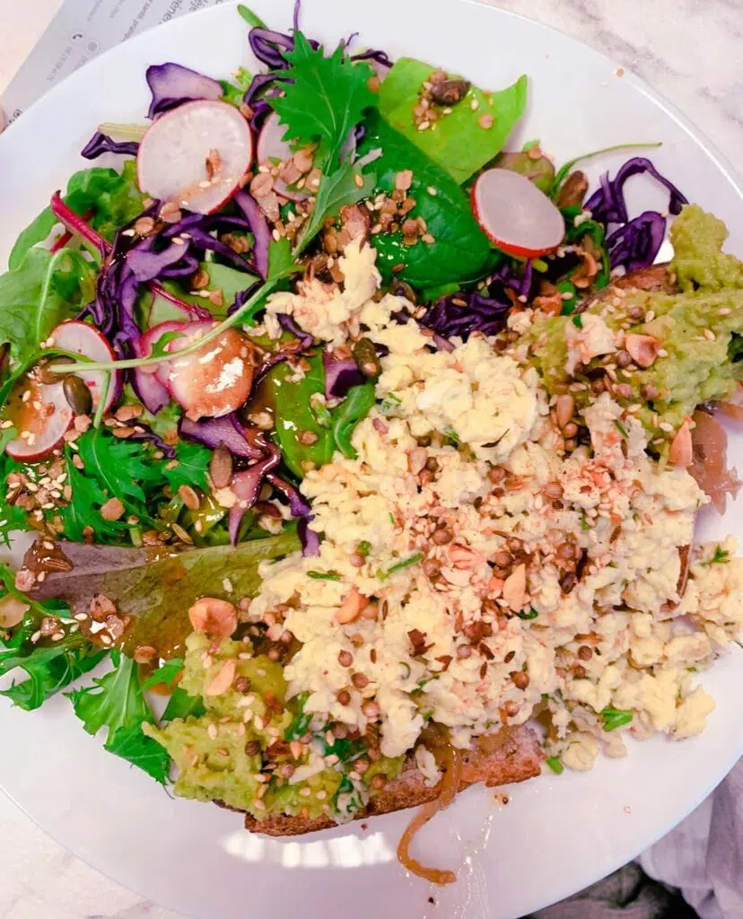 Les plats salés ne se font pas attendre ! Le choix est vaste et varié. Il y en a vraiment pour tous les goûts. Vous retrouverez les classiques avocado toast ainsi que les œufs brouillés – avec ou sans champignons, fraichement sortis de la cuisine. Vous pourrez également savourer si le coeur vous en dit, un scone salé au bacon ou bien une tartine au fromage frais, avec avocat.