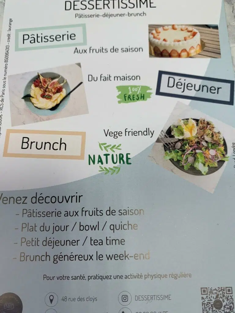 J’ai passé un super moment chez Dessertissime. Le brunch est très bon et les produits de qualité, sont choisis avec soin. La carte est variée comme il faut, ce qui nous permet de choisir assez facilement les plats qui nous correspondent. On sort du restaurant, sainement repus, avec la sensation d’avoir mangé suffisamment, ce qui nous donne encore de l’énergie pour profiter d’une belle balade, dans les rues avoisinnantes.