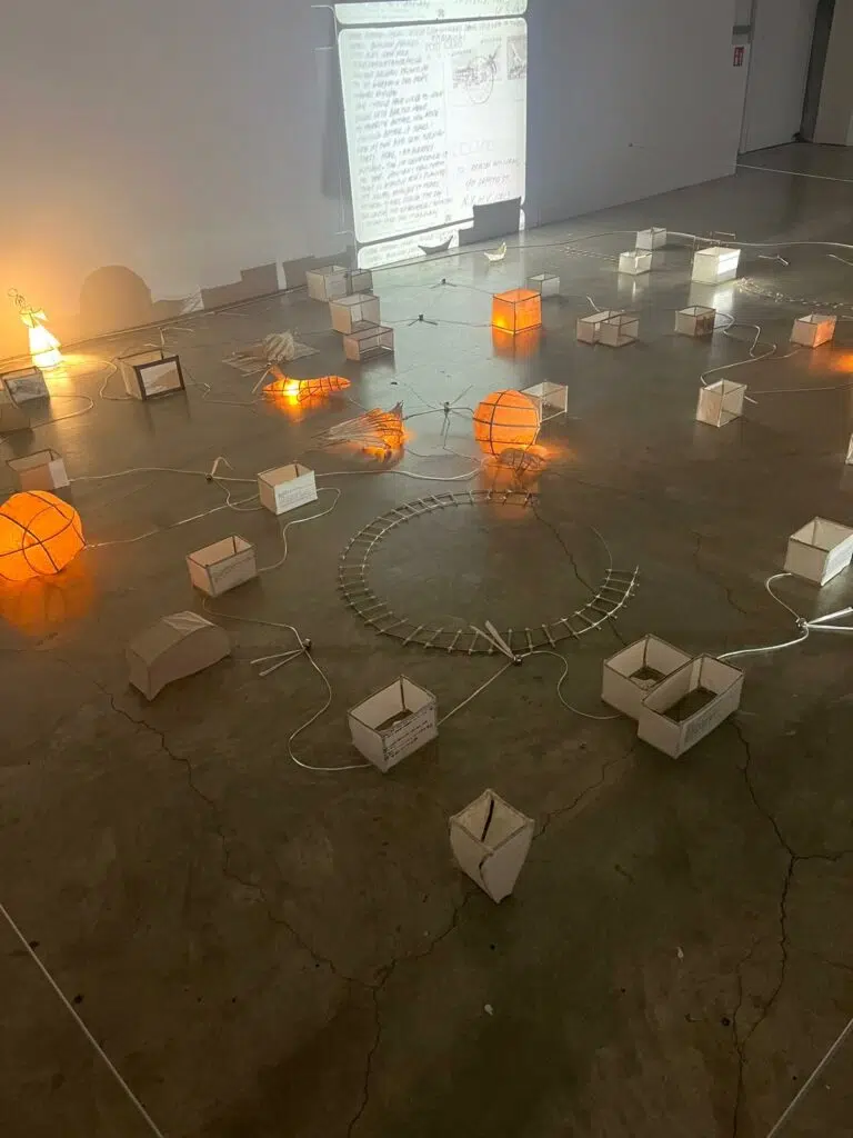 L’exposition ne se limite pas à la simple juxtaposition des œuvres : elle propose une narration subtile. Les archives et les textes sont intégrés dans l’espace, accompagnant le parcours et invitant le spectateur à comprendre comment les idées voyagent et se transforment. La scénographie, volontairement fluide, permet de ressentir physiquement ce passage des concepts entre continents et générations.