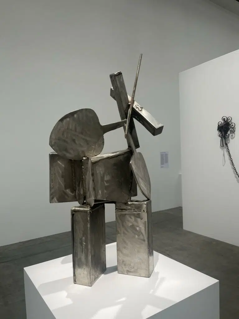 À proximité, la rétrospective du sculpteur Melvin Edwards plonge dans l’univers du métal travaillé depuis plus de six décennies. Ses sculptures, souvent réalisées à partir de chaînes, de barbelés et de plaques soudées, interrogent l’histoire des violences subies par les communautés noires, mais également la puissance de la résistance et de la mémoire.