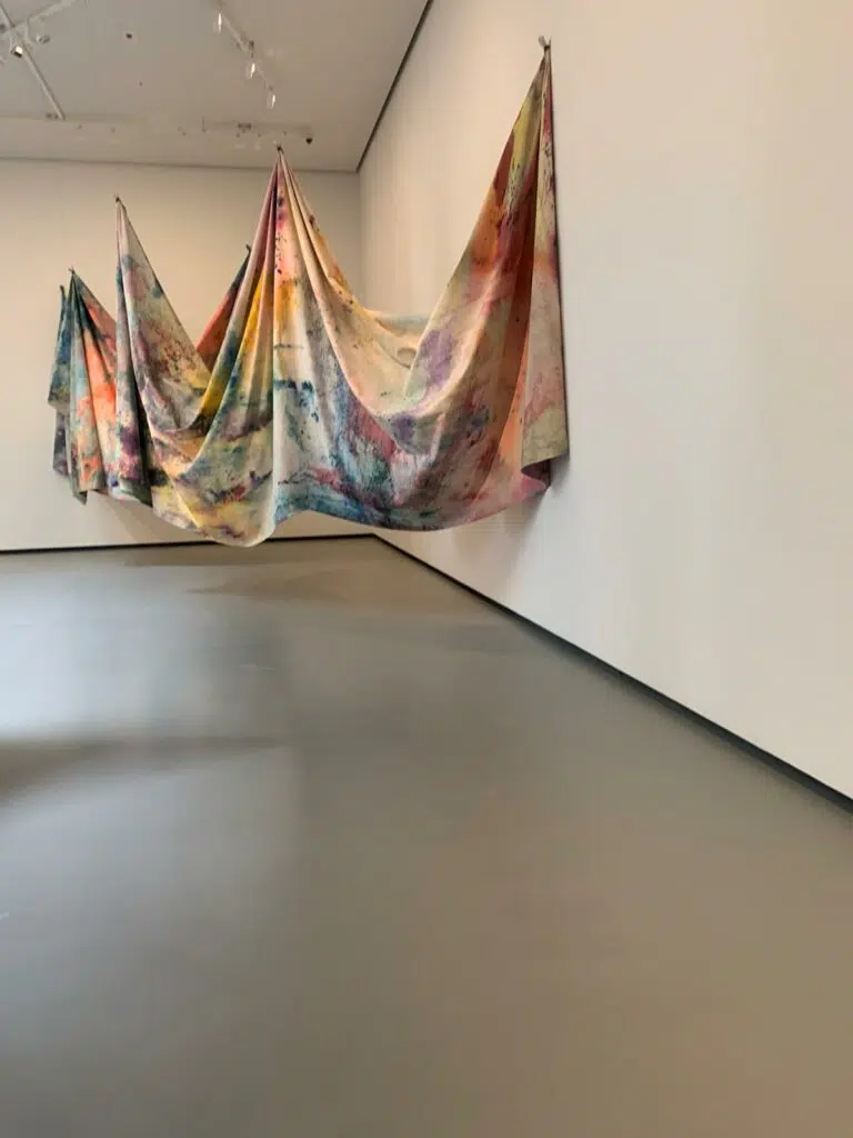 Katharina Grosse est l’artiste allemande qui se démarque complètement. Une salle regroupant dix de ses oeuvres lui est consacrée. Difficile d’expliquer et de commenter son univers tant il est atypique et monumental. En entrant dans la pièce, il y a comme une sensation hypnotique qui nous envahit tant la couleur est présente, du sol aux murs. Gigantesque et sidérant. A voir absolument !