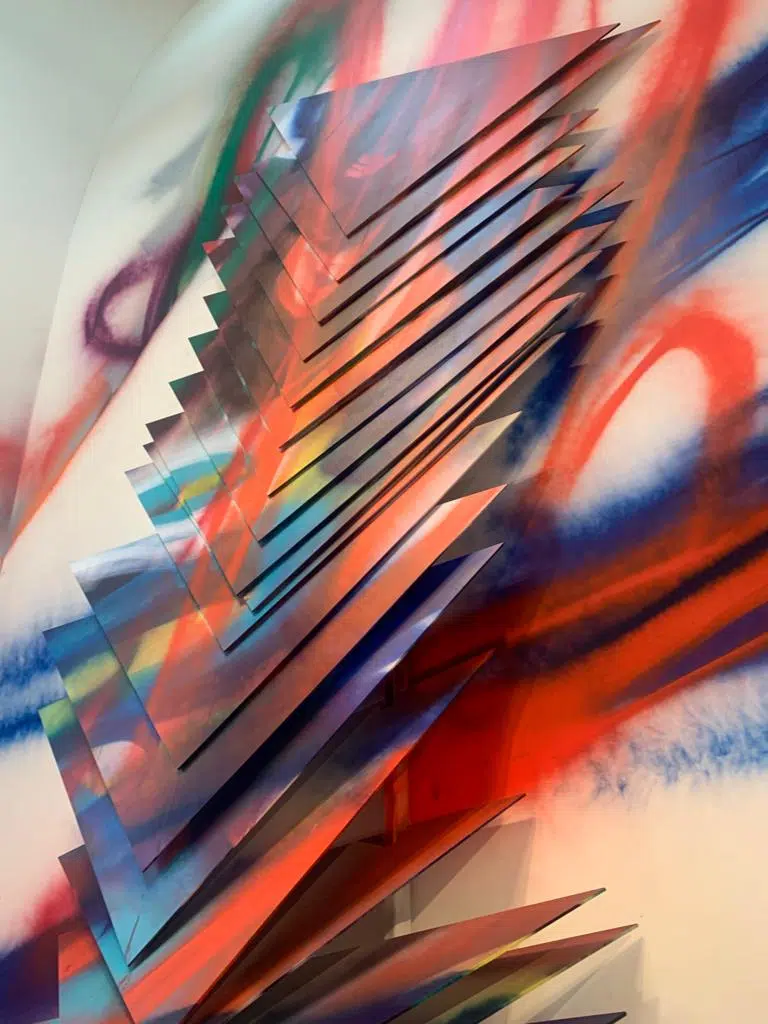 Au fil de la visite, vous découvrirez une œuvre empreinte d’abstrait et de pliage, inspirées de Pollock et Matisse. Des œuvres géométriques, monochromes, gigantesques, maîtrisant parfaitement l’art du pliage, vous seront présentées. Totalement envoutant !