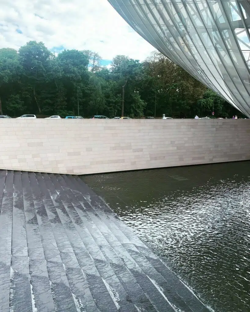 Aujourd’hui, je viens vous parler d’une exposition haute en couleurs qui se déroule à la Fondation Louis Vuitton, au cœur du bois de Boulogne. Cette fondation a vu le jour en 2014 et a pour but de pérenniser les actions de mécénat engagées par le groupe LVMH. C’est l’architecte Frank Gehry qui a conçu ce bâtiment baigné de lumière et d’une légèreté jamais vu auparavant.