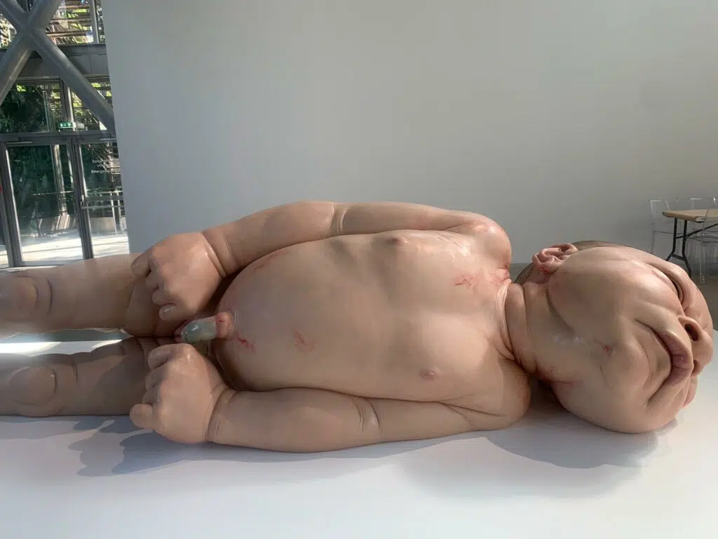 La Fondation Cartier expose jusqu’au 5 novembre les œuvres de Ron Mueck. Avec ses sculptures géantes, bluffantes de réalisme, l’artiste australien invite les visiteurs à une introspection et un questionnement intérieur, sur le rapport au corps et à la vie. Chacune des pièces présentée est le fruit d’un travail de plusieurs années, offrant ainsi une vérité, sa vérité, saisissante, hypnotique et bouleversante.