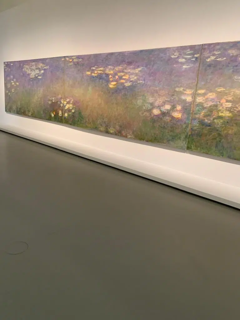 C’est une formidable visite dans un bâtiment architectural unique. J’ai beaucoup aimé le dialogue invisible entre ces deux artistes, qui à priori ne se connaissent pas. Cette correspondance unique m’a beaucoup émue car on y ressent toute la fragilité et sensibilité de Monet et Mitchell dans toutes ces couleurs. Mitchell perpétue dans une certaine mesure l’œuvre de Monet.