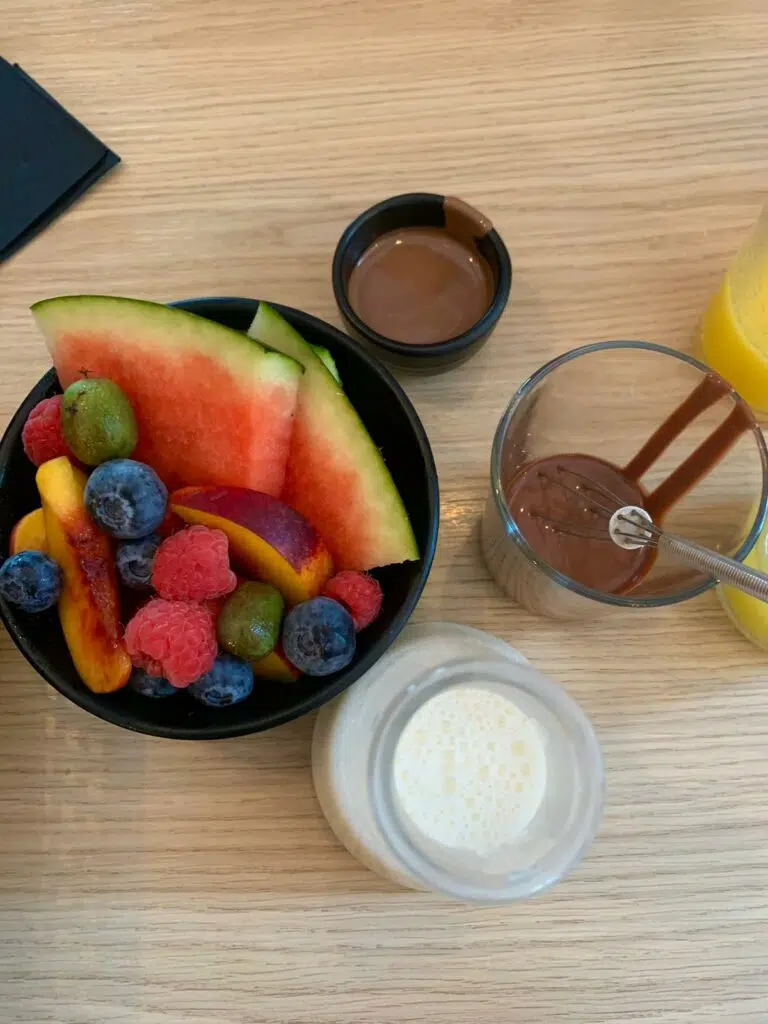 Arrive le moment tant attendu: la dégustation des chocolats: sur les 6 présentés, il faudra en sélectionner deux, qui vous accompagneront pour la suite du brunch. Difficile de faire son choix car toutes les saveurs sont exquises et fondantes. Nous choisissons de les savourer avec des viennoiseries, du lait chaud, des fruits et des glaces en cornet.