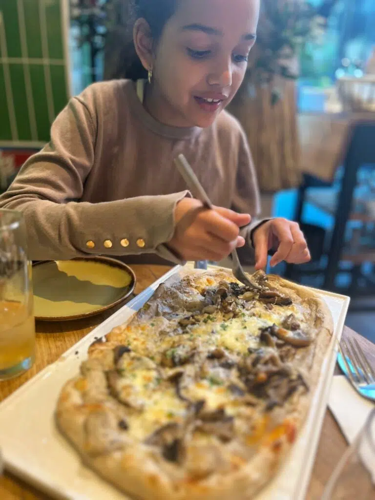 Impossible de ne pas insister sur la “Roi de la Forêt” (19,5€) : une pizza végétarienne à la crème, garnie de champignons de Paris, de ricotta onctueuse et d’un filet de crème de truffe d’été. Chaque bouchée est un festival de saveurs. L’alliance terre et douceur fonctionne à merveille. À tester au moins une fois (vous y reviendrez, c’est sûr).