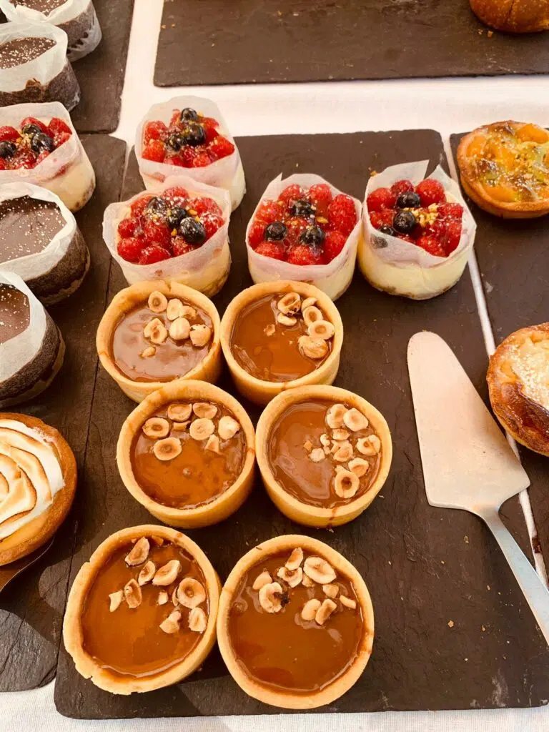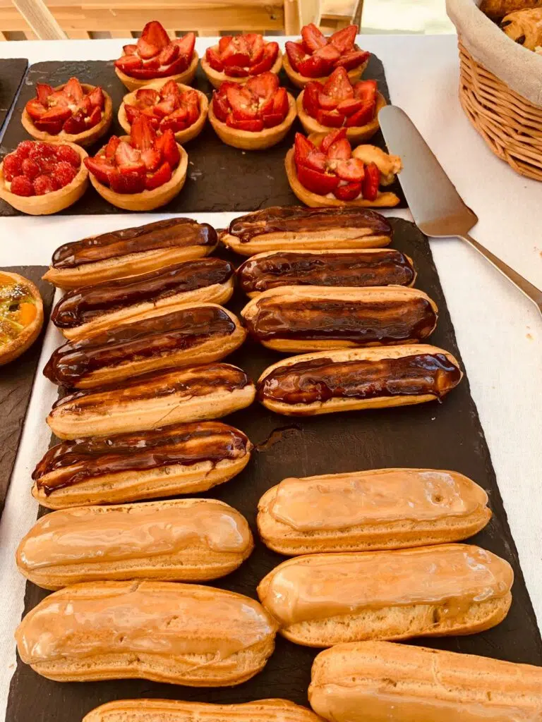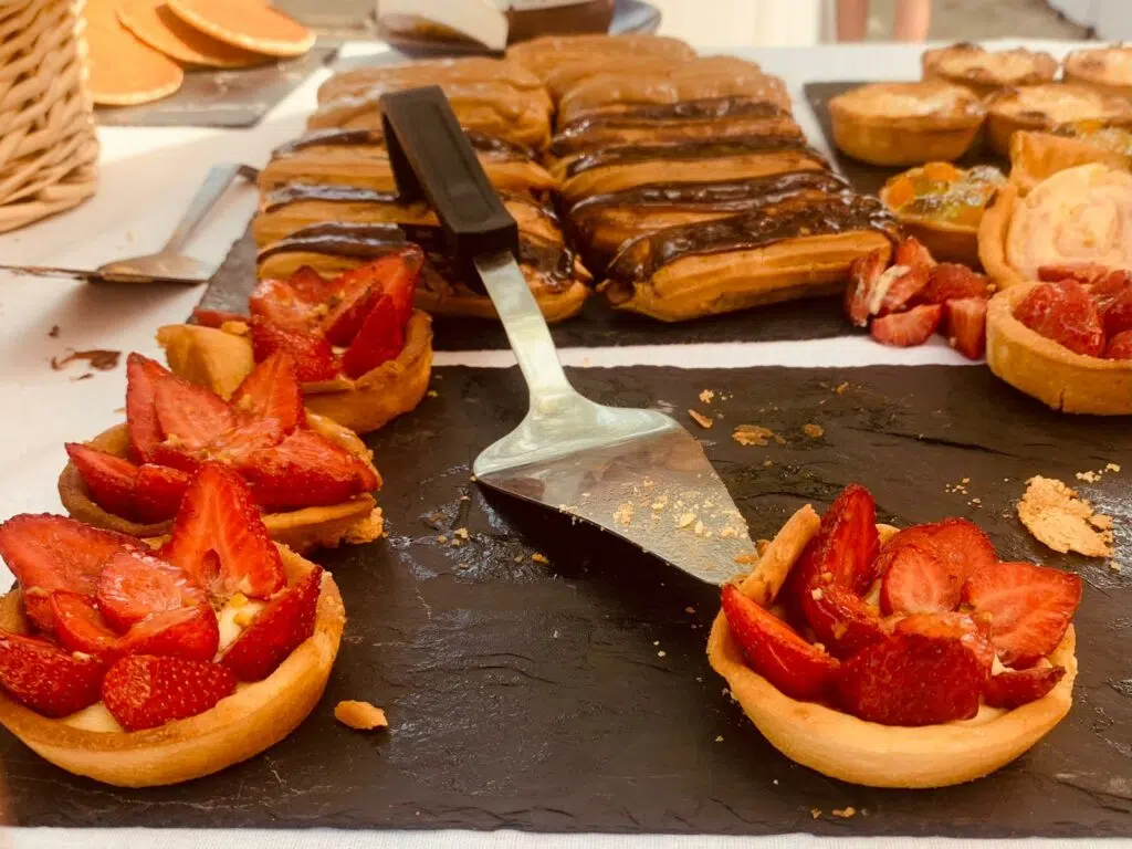 La partie sucrée n’est pas en reste. Au-delà des classiques viennoiseries, vous pourrez jeter votre dévolu sur un cheesecake, un éclair, une tarte au citron meringuée ou autre somptueuse pâtisserie. Les bambins pourront déguster des pancakes au nutella et savourer la multitude de fruits: pastèque, raisins, melon …