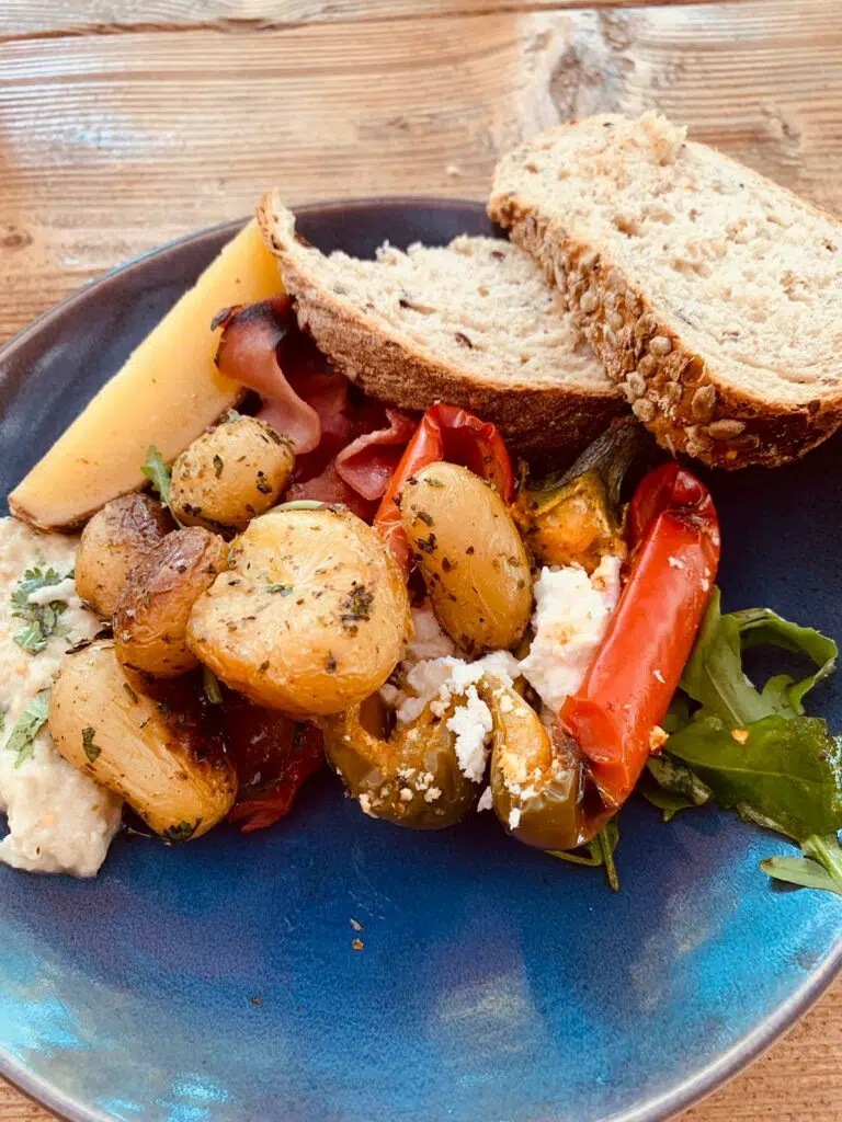 La sélection de plats est gourmande: salades, saumon fromage, œufs brouillés, bacon, pommes de terre…