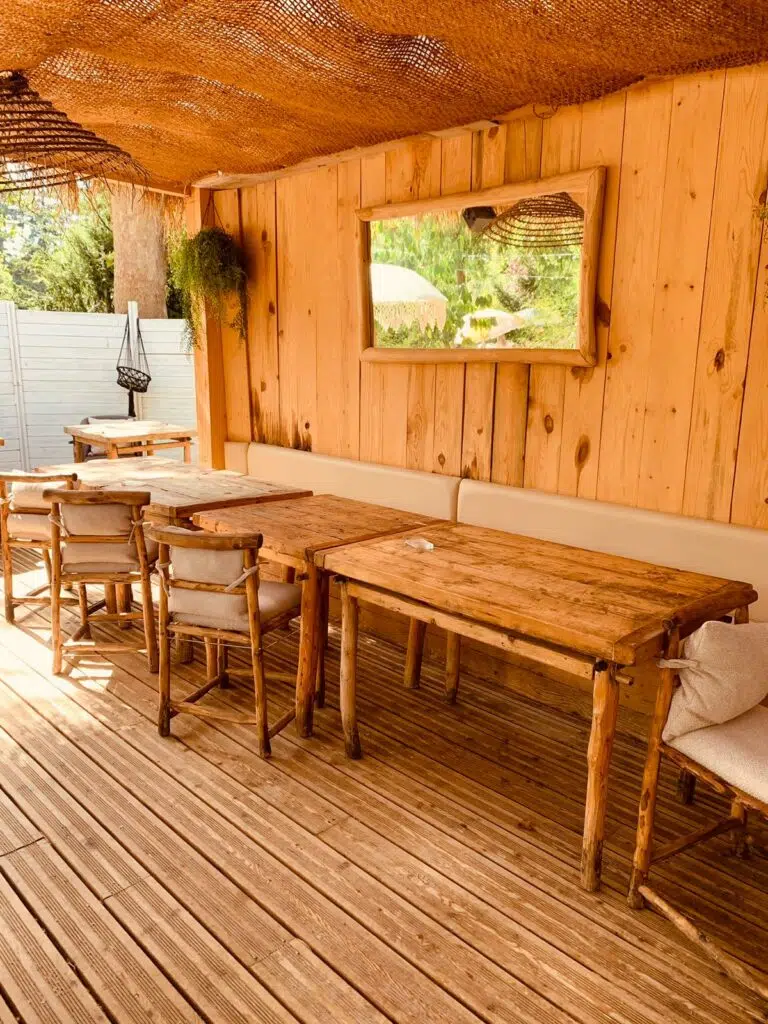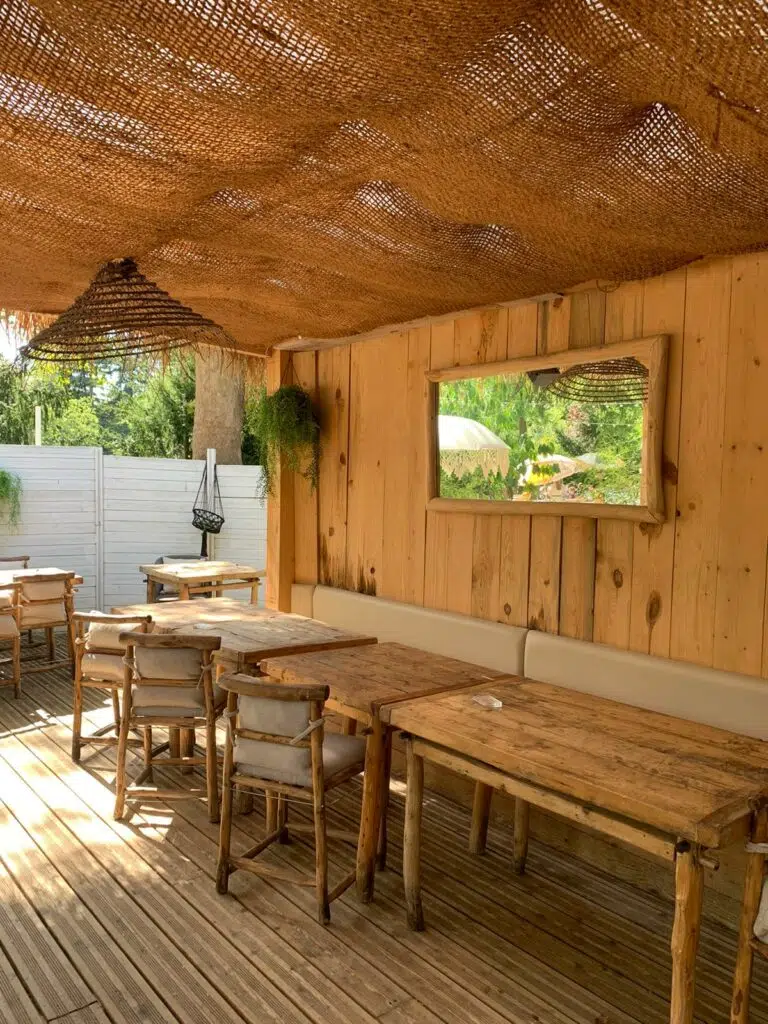 La décoration boisée nous plonge immédiatement dans le sud de la France. Spacieux, aéré, la Beach offre à ses clients de nombreux espaces de détente: transats, beds, fauteuils pour un moment de relaxation sans égal. Des douches et un brumisateur viennent compléter ce cadre idyllique.