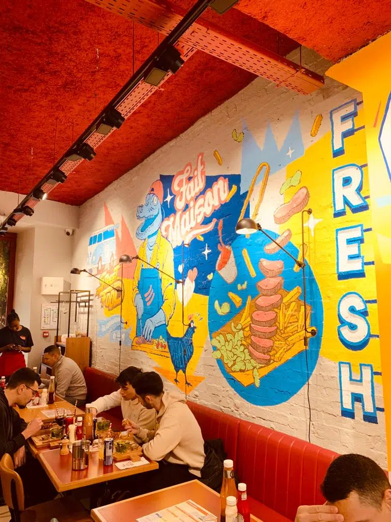 Le lieu est hyper agréable et présente une déco bariolée, colorée sur un fond de streetart. Quoi de plus logique pour un géant du streetfood? Les fameux brigadiers sont partout, surtout sur les murs et paraissent friendly, comme l’ensemble du personnel qui nous a accueillies.