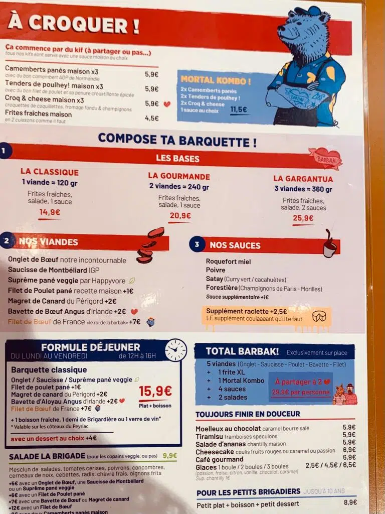 - la gargantua avec 3 viandes (pour les gourmands) à 25,9€