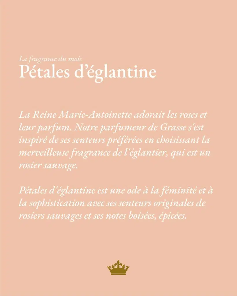 Si un produit devait incarner à lui seul le luxe absolu de cette Maison, ce serait sans doute la gamme Pétales d’Églantine. Avec son parfum délicat et sa composition haut de gamme, elle sublime la peau et laisse un voile parfumé irrésistible.