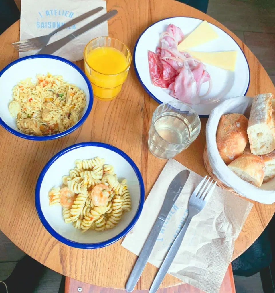 Anti gaspillage, l’atelier saisonnier a pensé à tout. Les assiettes sont petites afin d’éviter les gros plats garnis inutilement. Nous avons adoré la salade de riz au poulet et poivrons, la quiche aux poireaux ainsi que l’assortiment de fromage. Un véritable ravissement !