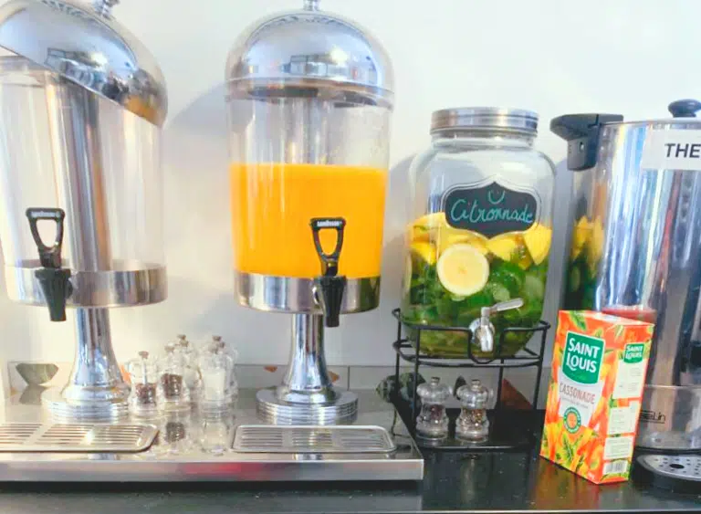 Le buffet se trouve à l’entrée et propose pléthore de plats très différents les uns des autres. Tout y est à volonté. Sur le côté, vous pourrez profiter des boissons fraiches (jus d’orange, citronnade) et chaudes (café, chocolat chaud…), également en libre service.