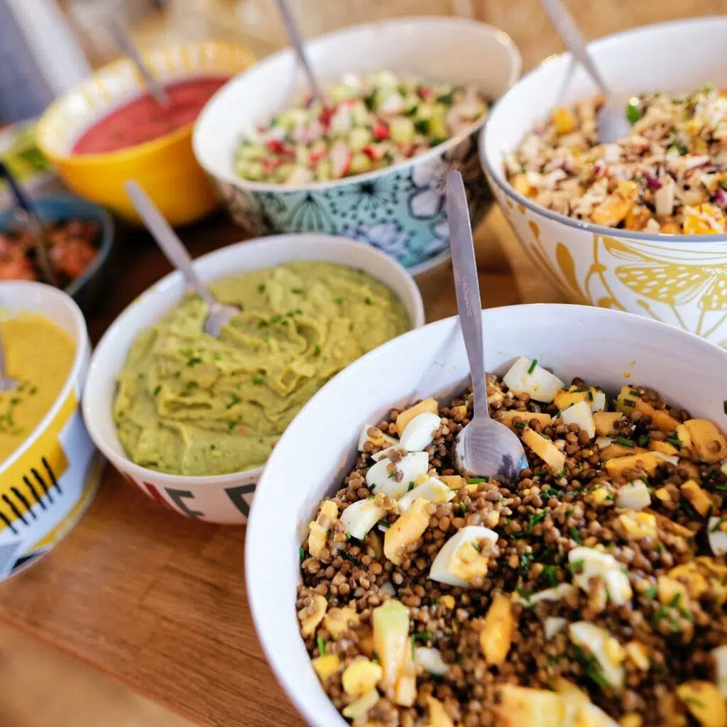 Des corbeilles de pain sont également à disposition permettant de picorer et mijoter de petits sandwich au houmous & betteraves ou encore avocat. N’hésitez pas également à agrémenter vos assiettes de charcuterie, fraiche et variée.