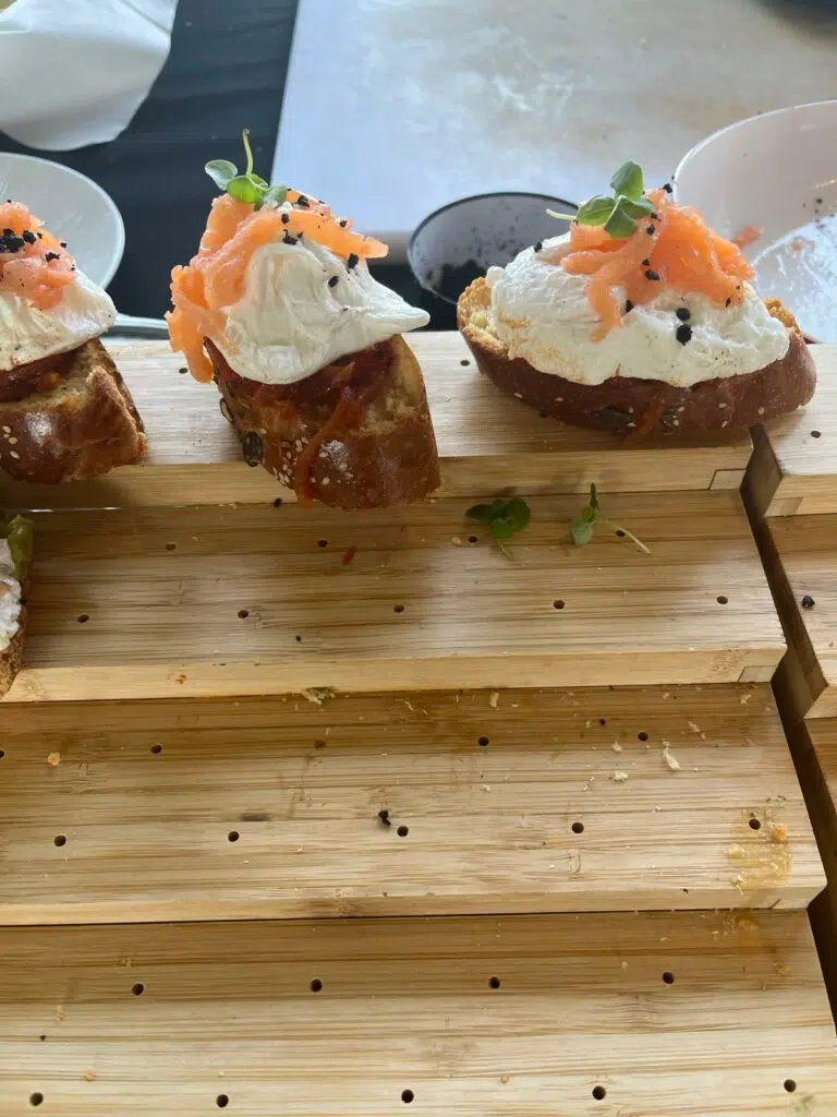 - Salé : pâtes en meule de parmesan, tartines gourmandes, viandes rôties, poissons marinés, sushis, salades, fromages…
