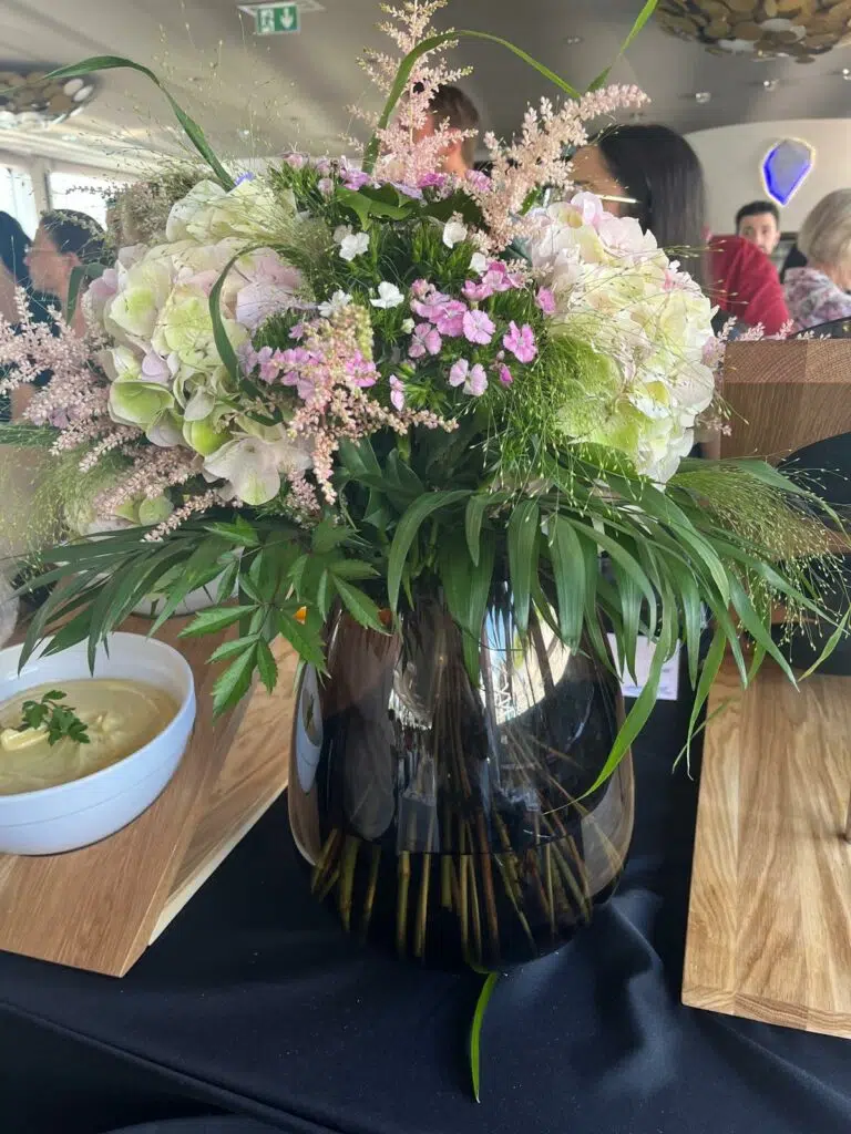À bord, tout est pensé pour que le moment soit parfait : lumière naturelle grâce aux baies vitrées, rooftop en teck de 400 m², musique lounge… et assiette bien remplie.