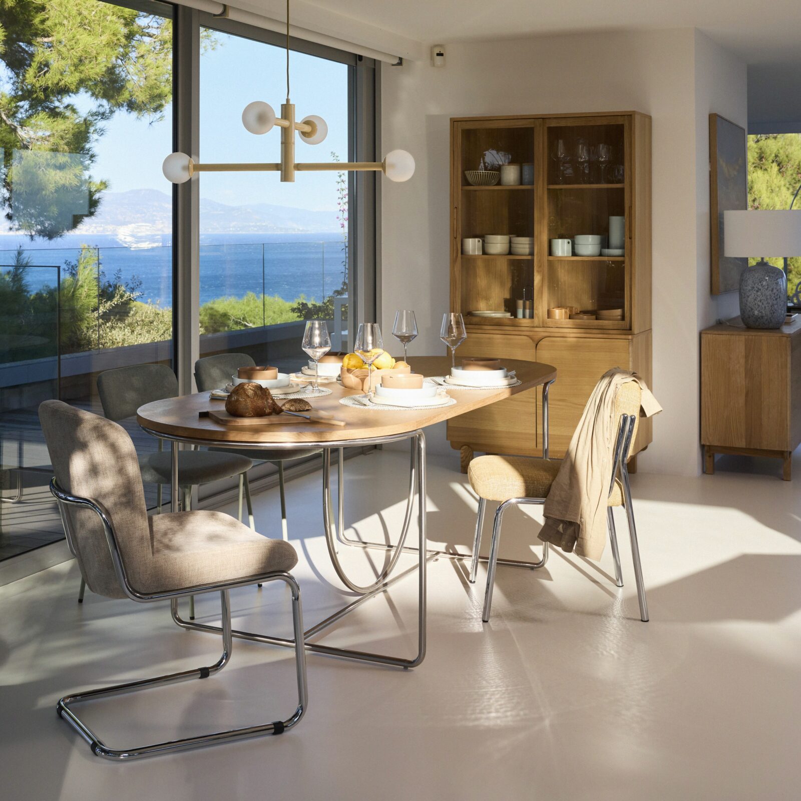 Dans ses collections actuelles, Maisons du Monde revisite le chrome en l’associant à des matières plus chaleureuses, créant ainsi un équilibre entre modernité et confort.