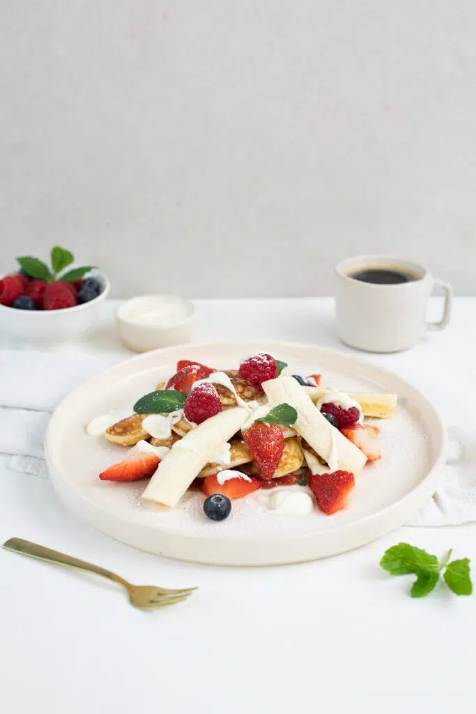 Il ne nous manque plus que les délicieux mini-pancakes pour finir en beauté. Fondants en bouche, ces petites mignardises, mélangés à des fruits de saison et à un coulis de chocolat belge bio, se mangent d’une traite.