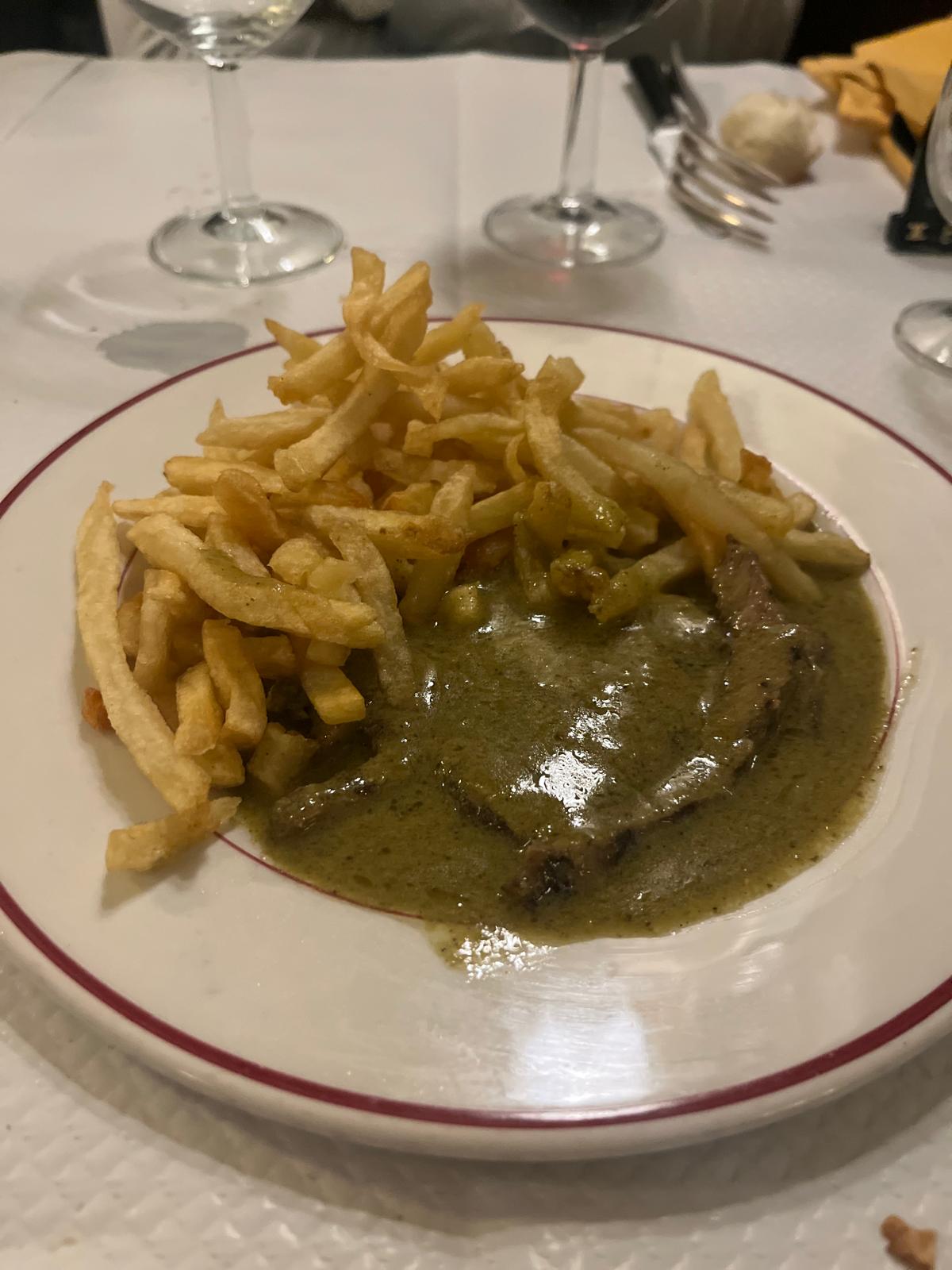 Impossible d’évoquer cette adresse sans parler de la sauce. Sa recette reste jalousement gardée. Beurrée, légèrement herbacée, avec une pointe d’épices, elle enrobe la viande et donne toute sa personnalité au plat. Certains viennent exclusivement pour elle.
