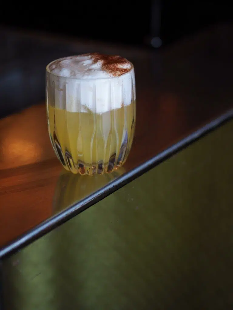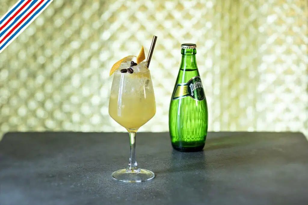La carte du Syndicat compte 10 cocktails signatures, douze cocktails iconiques, une sélection de vins & bières et le fameux féfé, ces canettes de hardseltzers à la pêche, abricot, gingembre, parmi d’autres saveurs originales.