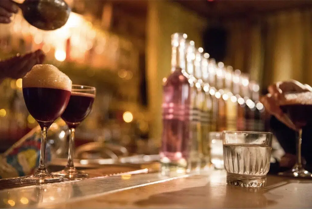 Derrière la devanture punk taguée, placardée d’affiches du Syndicat se cache en réalité, un bar à l’ambiance cosy et hype, maintes fois récompensé. Avec ses lumières tamisées et son décor un brin clinquant, ce Speakeasy de la rue du Faubourg Saint-Denis, propose des cocktails signatures frais et savamment dosés.