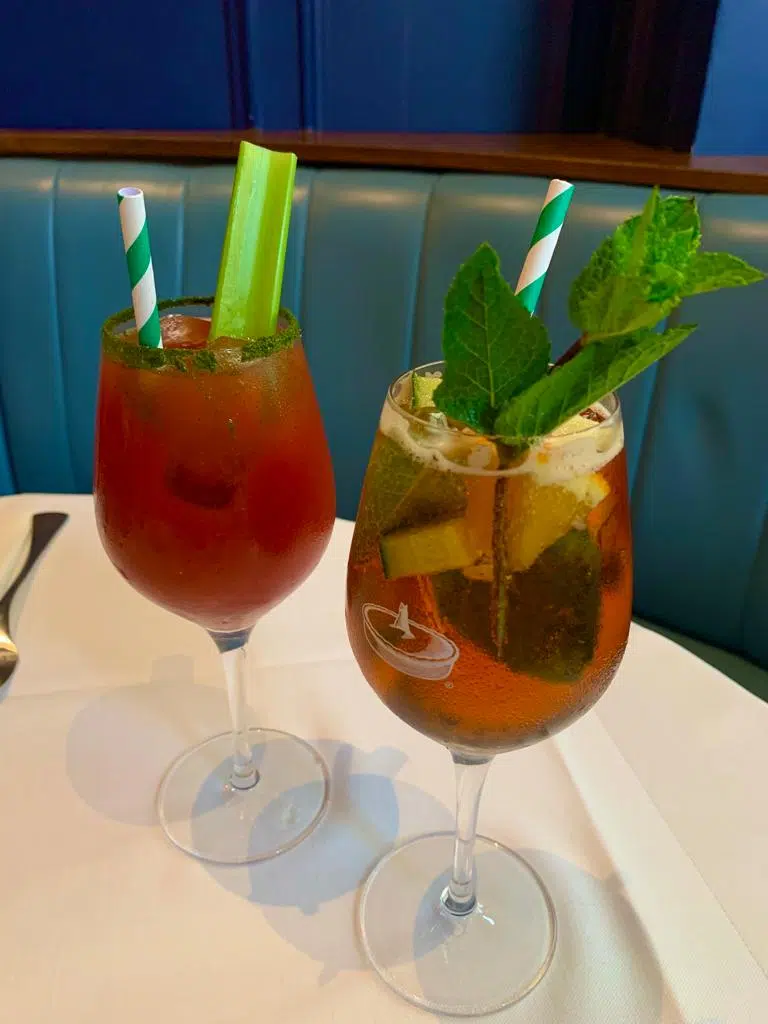 Le menu, à la carte vous offre une sélection de salé, sucré très variée, pour tous les goûts et budgets. Nous commençons notre repas par un apéritif. Quoi de mieux qu’un Bloody Mary pour entamer ce brunch? Léger, frais, il se boit avec délectation tant les ingrédients y sont harmonieusement mixés. Avec ce cocktail, accompagné d’un Pim’s fruité, nous avons presque l’impression de déjeuner à Londres. Dépaysement garanti !