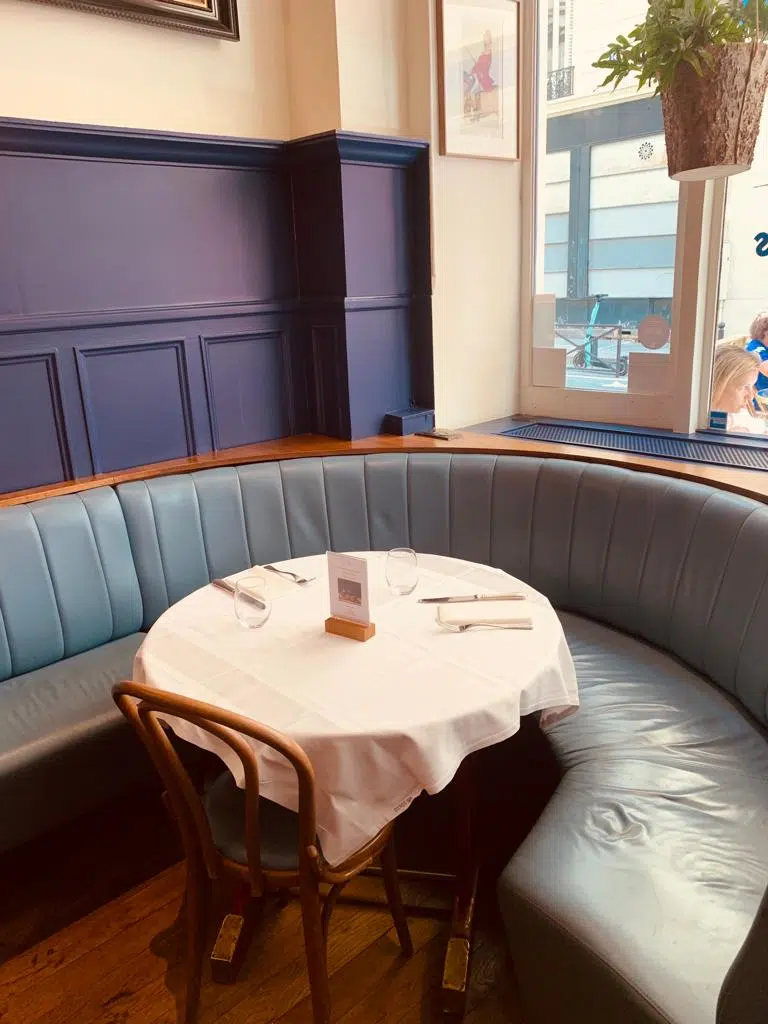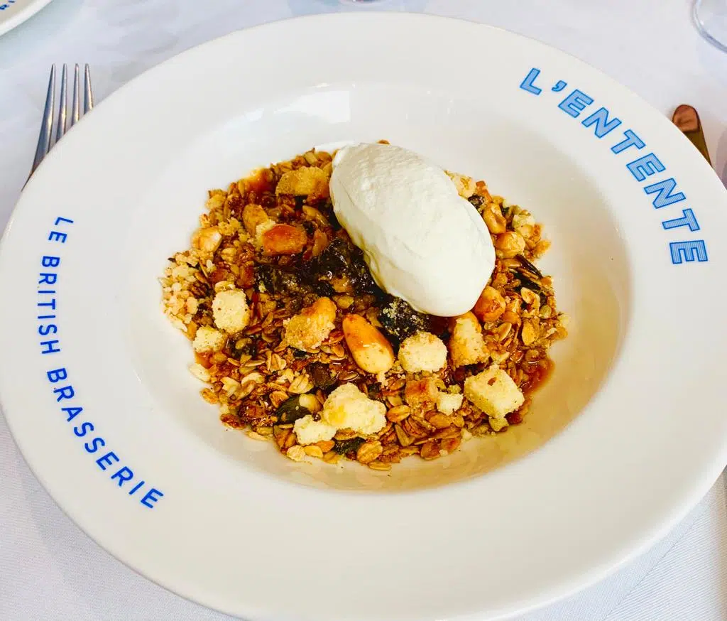 Si vous cherchez un buffet à volonté, passez votre tour. Chez L’entente, le brunch se concentre autour de produits méticuleusement choisis, frais et cuisinés à la commande, pour une expérience authentique. Confortablement installés dans des assises molletonnées de couleur azur clair, nous admirons les finitions boisées et la hauteur sous plafond qui donnent à cette brasserie un air d’appartement cosy. Les familles s’y sentent comme à la maison grâce aux grandes tables aérées. Les tableaux au mur nous invitent à la détente. La vaisselle est quant à elle très noble, caractéristique des demeures traditionnelles anglaises.