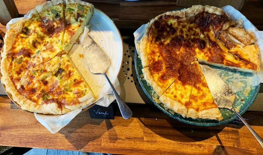 Les produits proposés s’adaptent aux petits comme aux grands: viennoiseries, fruits, fromages, œufs, saucisses, quiches, truite…. Les desserts ne sont pas en reste et préparés le matin même par un pâtissier en cuisine.