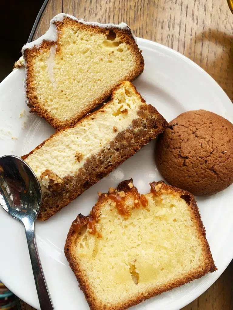 Tout est végétarien et bio et les portions sont soigneusement pensées pour laisser de la place aux desserts: mousse au chocolat, cake au citron (à tomber), cookies… Un jus détox vous est servi en début de repas et le café est à volonté.