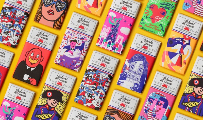 Cette marque 100 % française a su casser les codes du chocolat traditionnel en proposant des créations ludiques et colorées. Leur packaging ultra-graphique, réalisé par des artistes, en fait un chocolat aussi beau que bon.