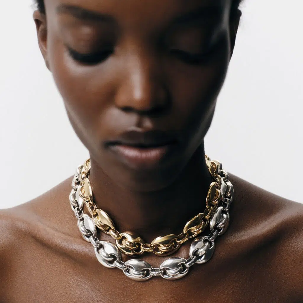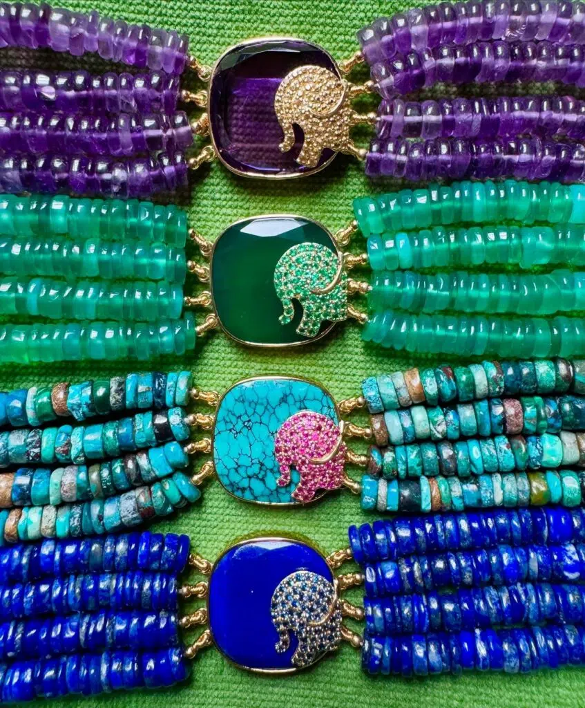 Une maison iconique, Aurélie Bidermann, symbolise à la fois luxe et féminité. Chaque création de la créatrice est une invitation à l’évasion, à travers des formes et des motifs inspirés par la nature, les voyages et les couleurs du monde. Le bracelet en or “Serpent”, célèbre pour son design sinueux et raffiné, est l’une des pièces phares de la marque. Le collier “Hortensia”, paré de pierres précieuses et d’un travail méticuleux de dorure, incarne parfaitement l’esprit de la maison.