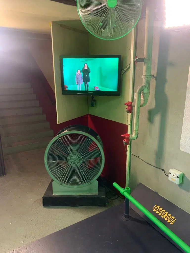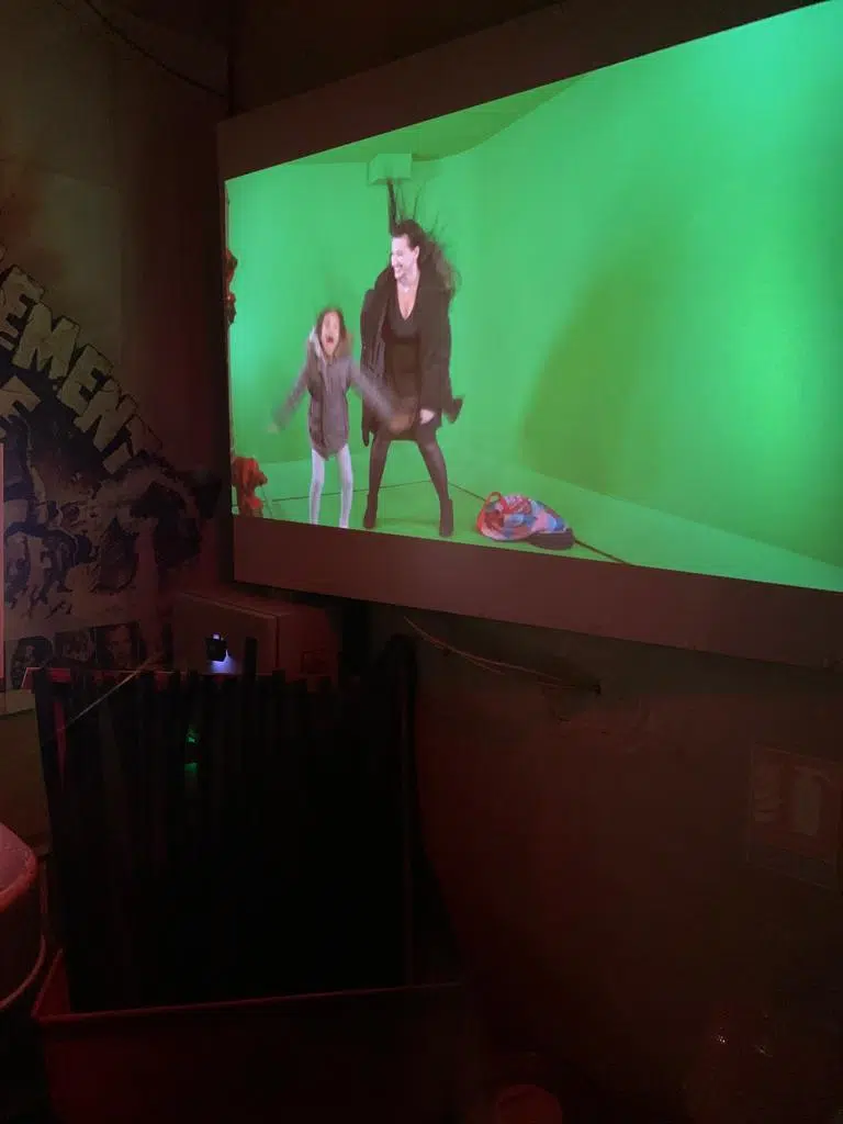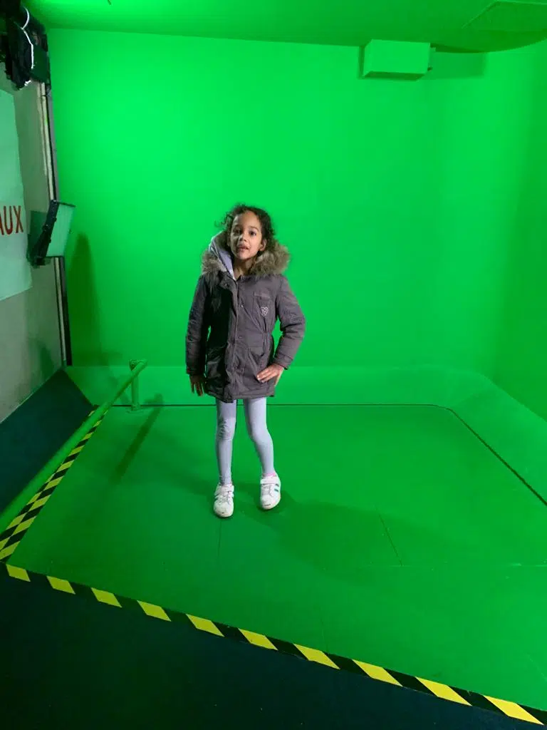 C’est maintenant que le plus drôle commence ! Allez sur le fond vert, vous pourrez jouer à l’actor studio. Attention, c’est vraiment filmé. Avec Eva, nous avons joué une scène du Titanic, assez mémorable 🙂